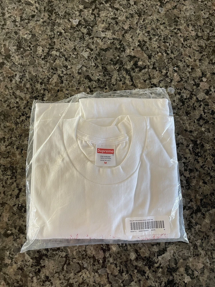 This Supreme Ralph Steadman Box Logo Tee is a must-have for any fashion-forward man. The white t-shirt features the iconic box logo of the brand and is made of high-quality materials that ensure both comfort and durability. The regular fit and short sleeves make it perfect for any casual occasion, while the size medium ensures a great fit for most men. The t-shirt is not vintage and comes in the color white, with accents that include the logo. It is a great addition to any wardrobe and is perfect for men who want to show off their love for Supreme.