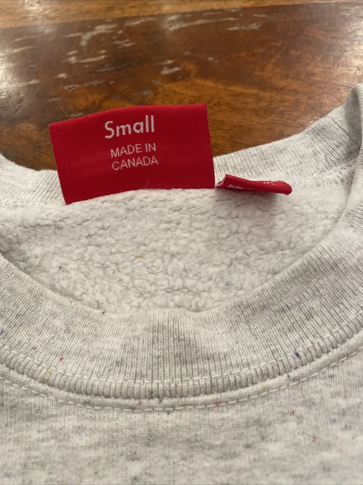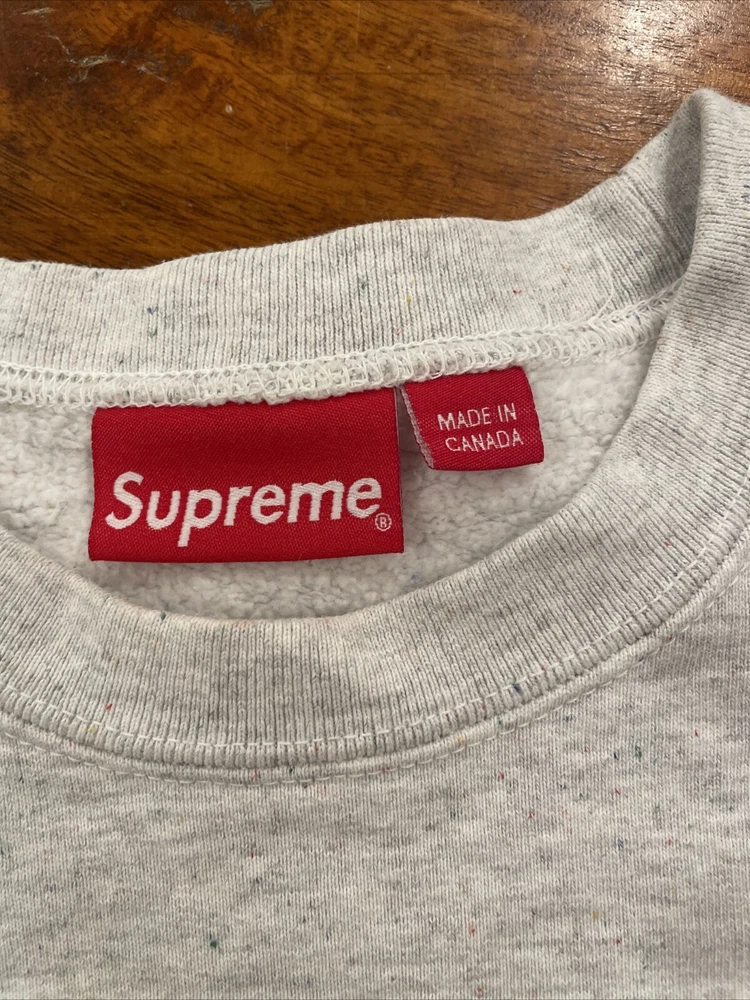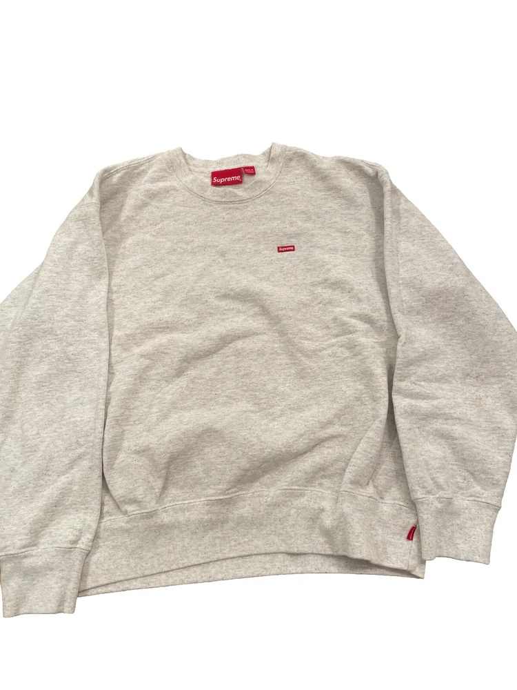 This Supreme Small Box Logo Crewneck Sweatshirt in Heather Multi Gray is a must-have for any fashion-forward man. Made with heavyweight material and preshrunk for ultimate comfort, this sweatshirt is perfect for gym and training, walking, and even skateboarding. The crew neck and long sleeve design provide extra warmth on chilly days, while the Supreme New York logo accents add a touch of designer flair. Available in size Men's Small, this pullover sweatshirt is a regular fit and comes from the Supreme Small Box Logo product line. Ideal for those who love retro and sports themes, this sweatshirt is a versatile addition to any wardrobe.