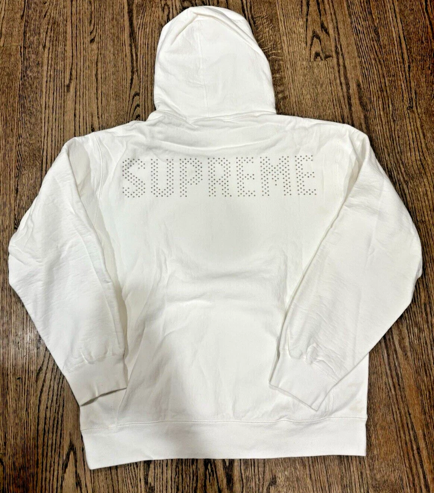 Supreme White Studded Logo Hooded Sweatshirt 2018/Sz XL