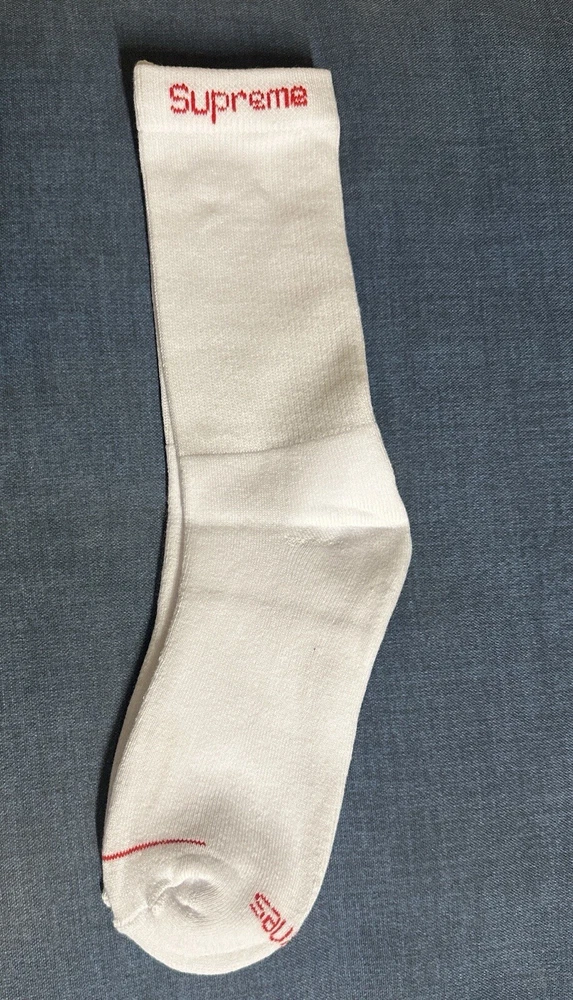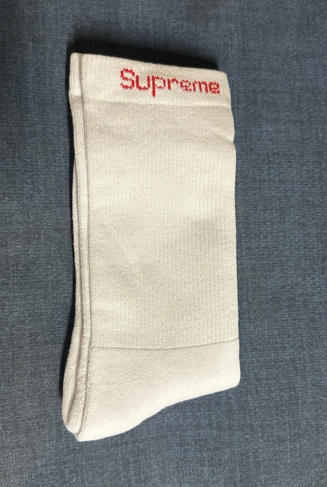 Theme: Classic, Logo Garment Care: Machine Washable Features: All Seasons, Breathable, Cushioned Performance/Activity: Baseball, Basketball, Cross Training, Cycling, Gym & Training, Running & Jogging, Skateboarding Material: Cotton, Cotton Blend, Polyester Department: Men Toe Style: Full Toe MPN: SS18A26 Brand: Supreme Handmade: No Style: Crew Socks Season: Fall, Spring, Summer, Winter Type: Socks Size Type: Regular Color: White Size: 6-12 Number in Pack: 2 Pairs Occasion: Casual