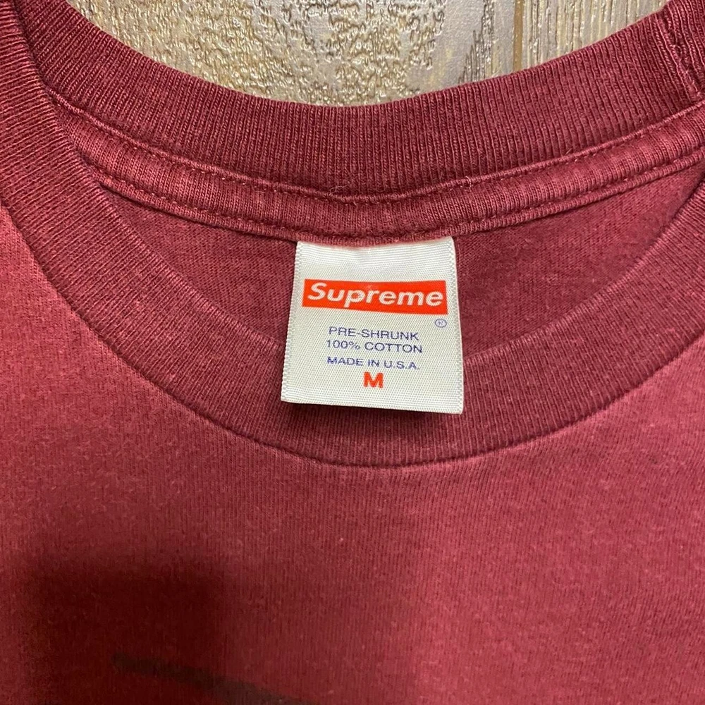 Elevate your wardrobe with the Supreme Graffiti T-Shirt, a perfect blend of style and comfort. This medium-sized, burgundy crew neck showcases an eye-catching graphic print that pays homage to the vibrant street art scene. Crafted from soft, breathable cotton, it's an ideal choice for any season. The shirt features a regular fit that suits a variety of body types, ensuring ease of movement and a relaxed feel. Short sleeves make it a versatile piece for both casual outings and laid-back settings. Its limited edition status adds a unique touch to your collection, while the double-sided design offers a subtle nod to the iconic skate and biker cultures of the '90s and y2k era.