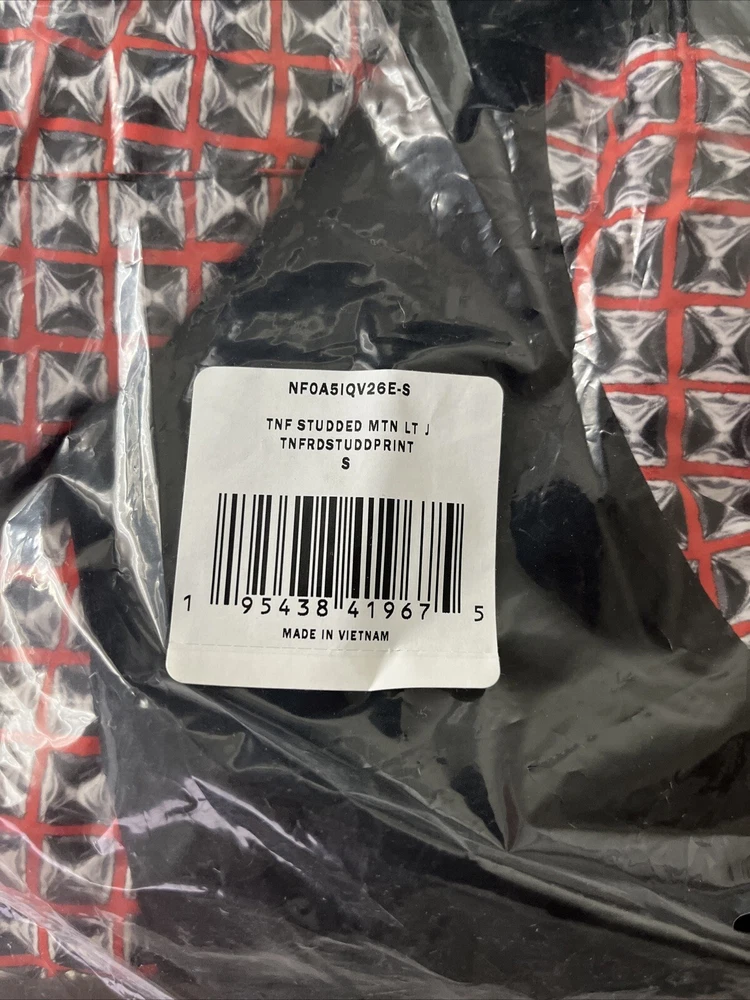 Brand new in original packaging, never opened. This Supreme®/The North Face® Studded Mountain Light Jacket in red is a must-have for any fashion-forward man. Made with nylon outer shell material and lined with nylon, this jacket features a zip and snap closure, hood, and full zip. The limited edition jacket is accented with printed studs, making it a unique addition to any wardrobe. The jacket is available in size small and is perfect for regular-sized men. It is a raincoat style jacket that is ideal for any occasion. The product line is Supreme®, and it is categorized under Clothing, Shoes & Accessories, Men, Men's Clothing, Coats, Jackets & Vests. Get your hands on this jacket today and add a touch of style to your wardrobe.