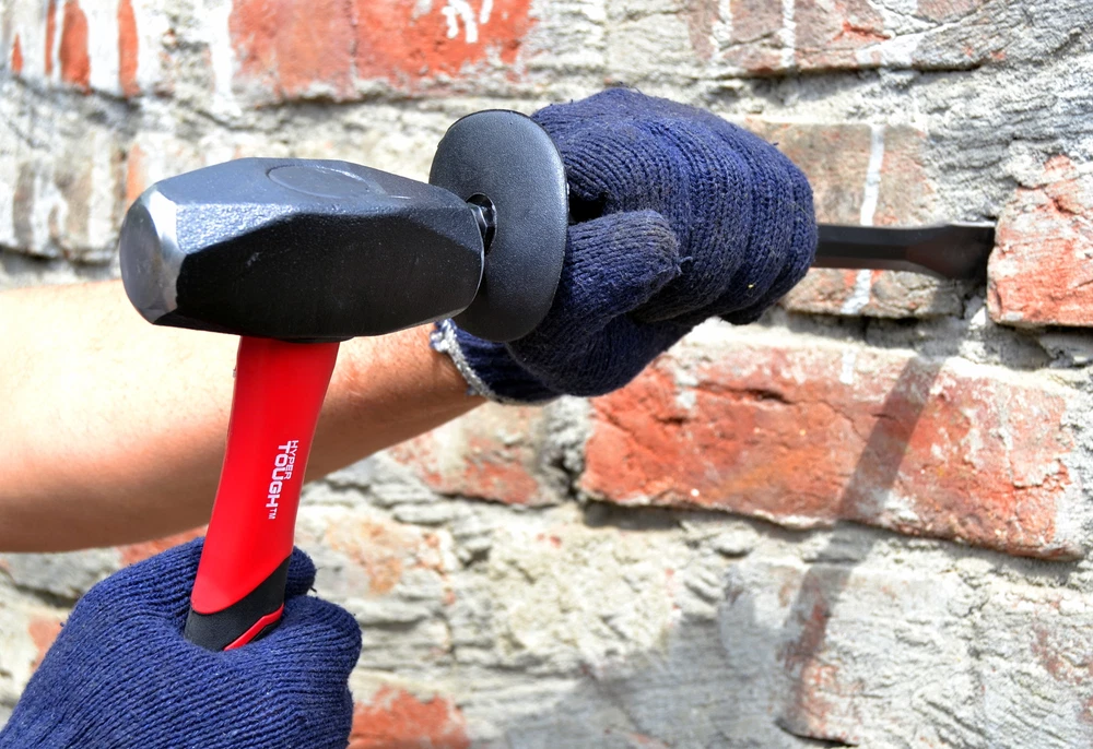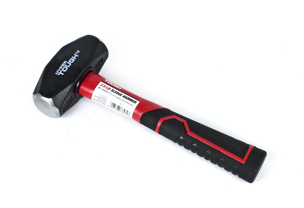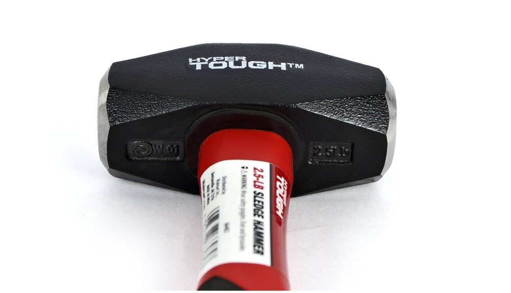 2.5 lb Sledge Hammer assembled with double injected fiberglass handle delivers a powerful, sure strike in comfort and safety for your projects. The virtually unbreakable handle core naturally dampens stinging vibrations and the poly jacket completely surrounds the core and protects it from while providing the user with a way to absorb the impact of missed strikes. The soft, comfortable TPR grip features an aggressive, non-slip tread to stay put in your hand, and since it is a directly integrated of the handle, it can never pull loose. The 2.5 lb sledge is a must-have which provides striking power not attainable with a conventional hammer. 2.5 lb Sledge Hammer Fully Drop Forged Carbon Steel Head Heat Treated Precision Machined Power Coated finish Double Injected Fiberglass Handle with Comfort Grip for controlled swing