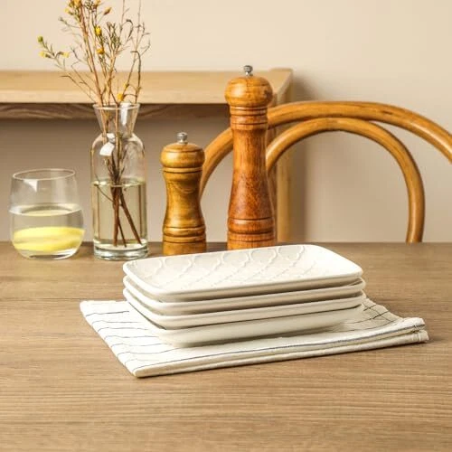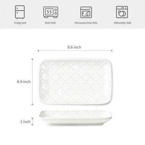 Menu 1. We require immediate payment. 2. We currently accept payment via eBay managed payments only. 3. Once payment is cleared, we will dispatch your shipment within 1-3 business days. Please refer to the "Shipping" tab for more information regarding shipping speed to your destination. Sureasy Ceramic Salad Plates, Rectangular Appetizer Plates 8 inch, Small Serving Plates for Entertaining, Small Dinner Plates Set for Dessert, Sushi, Embossed Porcelain Dish, Set of 4, White Product description VERSATILE SMALL DESSERT PLATES: Each rectangular salad plates measures 8.7 x 4.9 inches with lipped rim which keeps food from slipping out, and each one is different embossed pattern for adds a touch of style for tea party, dinner party, birthday, wedding, Christmas etc., Perfect size great for displaying various foods such as salad, sushi, cookie, cheese, sandwich etc ELEGANT TIMELESS EMBOSSED PATTERN DESIGN: These dessert plates with unique exquisite embossed pattern brings visual appeal to the table and perfectly decorated the food. With four mix up the pattern can add layers of interest and elegance to your table setting, making your dinner more cheerful HEALTHY STURDY PORCELAIN: Made of food-grade ceramic and fired at a high temperature which ensure them sturdy and chip-resistant. Safe for Microwave, Oven, Freezer and Dishwasher. (Please Note that due to the raised embossed surface is not suitable for knife use on the plate) STACKABLE & EASY TO HOLD: The flat bottom shape can be easily stacked and they don't take up a lot of room in the cabinet. These small serving plates can be cleaned easily using warm or cold water. The rectangular appetizer plates with slightly curved edges design which makes the grip more comfortable IDEAL PRESENT CHOICE: The porcelain small dinner plates with unique glaze, which is a great option for your family and friends on special days such as Housewarming, Christmas, Thanksgiving, Mother's Day, Wedding Party, Relocation and other Anniversaries PLEASE MESSAGE US IF YOU HAVE ANY OTHER QUESTIONS, AND MANY THANKS FOR READING ALL OF THIS. Copyright ©#. All Rights Reserved.