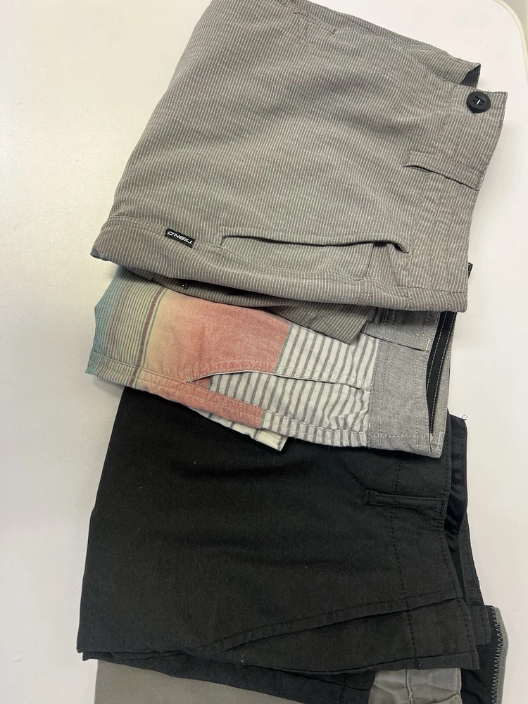 Surf Brands Shorts Lot Volcom, O’neill, Valor Size 28 And 30 All are size 28 excepts the grey stripped are 30 All in good condition Blue Volcom shorts have one small tear on the waistband and the valor shorts label on the inner waistband is peeling See pics before purchasing