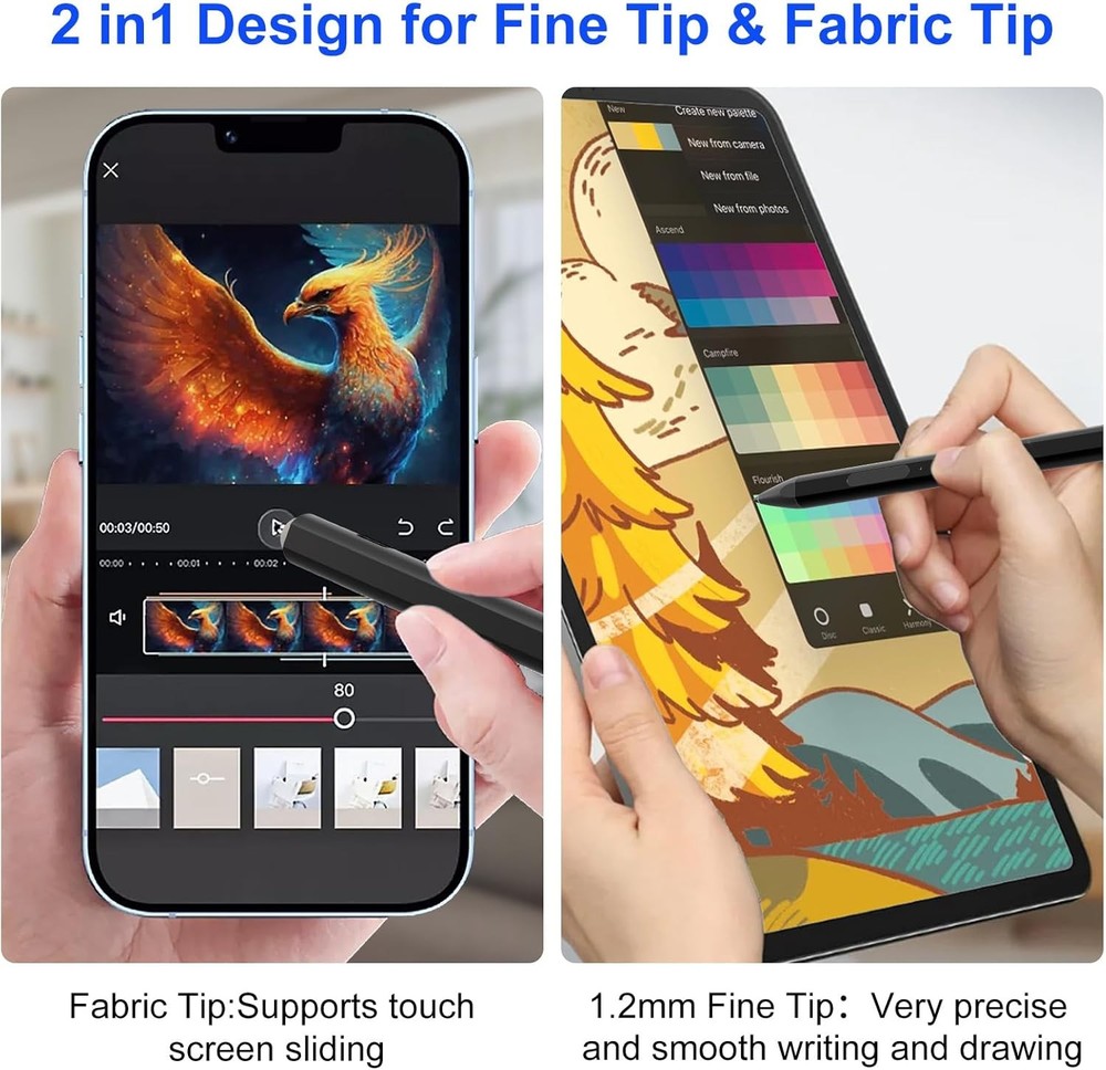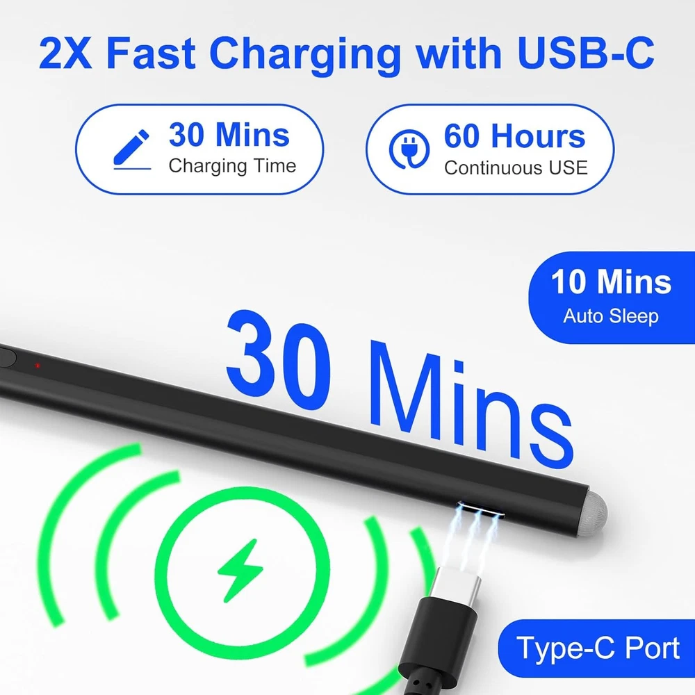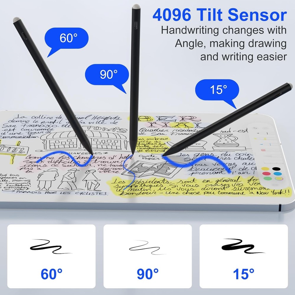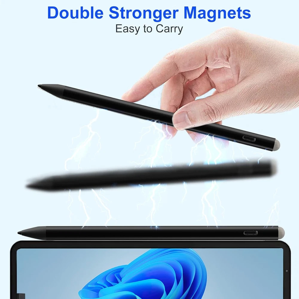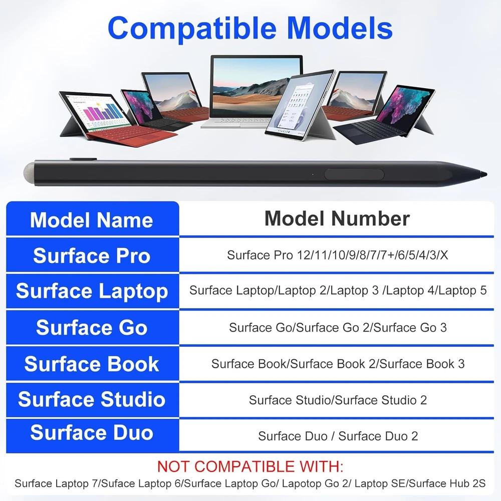 Store New Arrivals Add to Favorite View Feedback Contact Surface Pencil - Stylus Pen for Surface Pro 12/11/9/10/8/X/7/6/5/4/3 with 4Nibs, Surface Pro Stylus for Surface Go 3/Go 2/Book/Laptop 5, 4096 Pressure Sensitivity, Palm Rejection Description Unit Count 1.0 Count Batteries Required? No Are Batteries Included No Item Weight 1.58 ounces Color Black Material Aluminum Compatible Devices function(f) {var _np=(window.P._namespace("DetailPageProductOverviewTemplatesJava"));if(_np.guardFatal){_np.guardFatal(f)(_np);}else{f(_np);}}(function(P) { P.when('A').execute(function(A){ A.on('a:truncate:po-attribute-truncate-4:updated', function(data) { var isTruncated = !data.truncateInstance.getIfTextFits(); var seeMoreElement = document.getElementById('po-attribute-see-more-id-4'); if(seeMoreElement) { seeMoreElement.style.display = isTruncated ? '' : 'none'; } }) }); })); Surface Book / Book 2 / Book 3, Surface Laptop / Laptop 2 / Laptop 3 / Laptop 4/Laptop 5, Surface Pro 12/11/10/9/8/X/7/7plus/6/5/4/3, Surface Studio/Surface Studio See more Minimum Required Operating System Version Windows 10 Battery Average Life Standby 60 Hours Package Dimensions 7.24 x 2.28 x 0.67 inches Tilt Sensitive and Palm Proof - Surface pro stylus different angles produce different lines and shadows on the screen. Tilt shadows in Pencil Brush or thicker lines in Marker Brush. In addition, our surface pro pencil supports palm rejection. You can put your palm or fingers on the screen while sketching, drawing, and writing, and enjoy writing small letters and drawing thin lines as easily as you would with a real pencil, without worrying about accidental touches. Dual-Touch Design - The surface pro pen features a two-in-one touch design. 1.22mm tip uses traditional handwriting to simulate the feel of a real pen, and an upgraded smart chip gives the pen up to 0.1mm pixel-level accuracy, high sensitivity, no breakpoints, and no latency. The other end of the surface go stylus uses capacitive touch technology to enable swiping and tapping similar to what you would do on a smartphone screen. Charge UP to 2x Faster - The surface pro 12 stylus USB-C fully charges in 30 minutes for up to 60 hours of continuous operation.LED indicators remind you to charge in a timely manner, red for when it needs to be charged and blue for when it's full. Automatically shuts off after 10 minutes of inactivity for energy efficiency. Quick Connect and Dual Magnets - No need to connect to Bluetooth or apps. Press any button on the surface pro 11 stylus and it's ready to go. Also comes with two built-in magnets ready to securely magnet to your device - no more rolling and losing. Eraser Key and Right-Click - The surface pro 9 stylus penfeatures a one-click toggle eraser function (long-press to erase large swaths of content, whether it's a typo in a note or a blemish in a design draft) and a right-click shortcut function (one-click = the right mouse button, which supports popping up, returning to the desktop, switching apps, and other high-frequency actions). Compatibility - Pencil for surface pro with Surface Pro 12/11/10/9/8/7/7+/6/5/4/3, Surface Laptop / Laptop 2 / Laptop 3 / Laptop 4 / Laptop 5, Surface Book / Book 2 / Book 3. Surface GO 1/Surface GO 2/Surface GO 3/GO 4, Surface Studio/Surface Studio 2. Note: our stylus is not compatible with Surface Laptop 7 2024 Product description Package includes: 1* Stylus 3* Replacement nibs 1* User manual 1* Type - C charging cable 1* Type - C charging port dustproof rubber plug Features: Press any button to start writing and drawing. No need to connect to Bluetooth or any application Supports 4096 levels of sensitivity Supports oblique writing mode Anti-palm rejection, both hands can be placed naturally on the tablet Dual touch design, the tip of the pen uses traditional handwriting input to simulate the feeling of a real pen, and the other end uses capacitive touch technology to achieve operations similar to sliding and clicking on the smartphone screen. Magnetic suction function, portable Charging port: USB-C (30 minutes full, 60 hours of continuous use) Automatically enters sleep mode after 10 minutes when not in use With LED charging indicator Write or draw like you're on paper: - The surface pro stylus has 4096 levels of pressure sensitivity to create lines and shadows at different angles on the screen. - Pressure-ensitive: A gentle press produces a fine line; a firm press produces a bold line, reproducing a true-to-life stroke. -Tilt Recognition: Automatically adjusts the stroke effect according to the tilt angle of the pen tip, which is suitable for shading drawing and art creation. - Meet the precise requirements of professional designers for fine sketching, coloring and detailing. The 1.2 mm nib is resistant to abrasion and simulates real pen strokes to accurately outline, shade and color on the screen. The upgraded smart chip gives the pen up to 0.1 mm pixel-level accuracy, high sensitivity, no breakpoints, no delays , and smooth writing and drawing. Palm anti-touch function , it allows both hands to be placed on the screen naturally. No need to worry about interrupting text or image input by accidentally touching the screen. Writing and drawing are real, smooth and natural! In contrast , styluses without this technology do not allow both hands to rest naturally on the screen, resulting in hand fatigue, writing interruptions and delays! Dual Touch Design The 1.22mm tip of the stylus uses traditional handwriting to simulate the feel of a real pen. The other end of the Surface stylus uses capacitive touch technology to swipe and tap similarly to a smartphone screen. Dual Touch Design for added convenience and efficiency. ABOUT US We offer the best prices around on high quality products. Our E-store includes media such as books, movies, music and games while offering electronics, toys, sporting apparel, clothing, tools, general home, garden items and more. SHIPPING We are always working hard to ensure