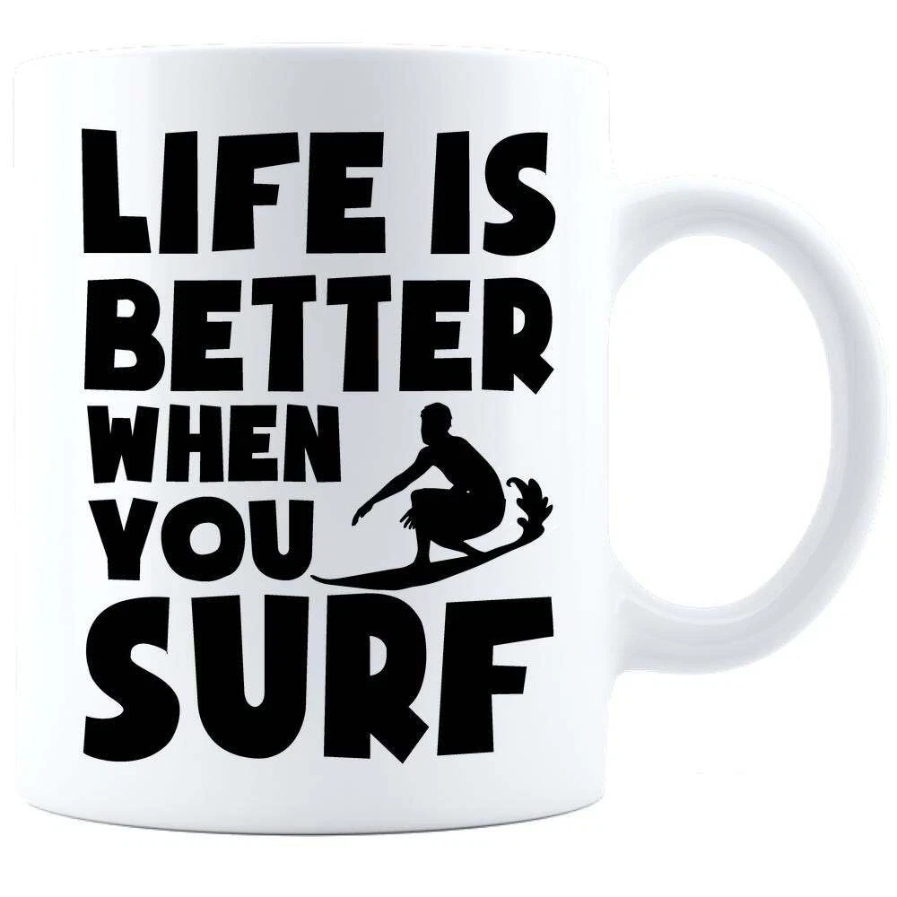 Surfing Mug Surf Mug Surfer Mug Surf Gift Surfing Coffee Mug Surf Gifts Surfing Product Details.. This high quality 11oz. ceramic white mug has a premium hard coat that provides crisp and vibrant color reproduction sure to last for years. Perfect for all hot & cold beverages. The highest quality printing possible is used. It will never fade no matter how many times you wash it. Material: 100% Ceramic. Print both sides. Dishwasher and Microwave Safe. High Gloss + Premium White Finish. Printed in the U.S.A. Personalized & Custom. We support personalized and custom mug to add custom, when placing an order, you can add notes to the "order note" in shipping address section. Also you can contact us directly via message. Shipping Info. Ready to ship in 1 to 2 business days, All products are made-to-order and proudly printed in the United States. Shipped by USPS and DHL, You will receive your order in 5-7 days. Replace & Refund. All products are defective during shipping broken, chipped will be replaced free of charge. You are not satisfied with the product, we will refund 100% money to you. If any other issues arise, please do not hesitate to message, we would be more than happy to assist you.