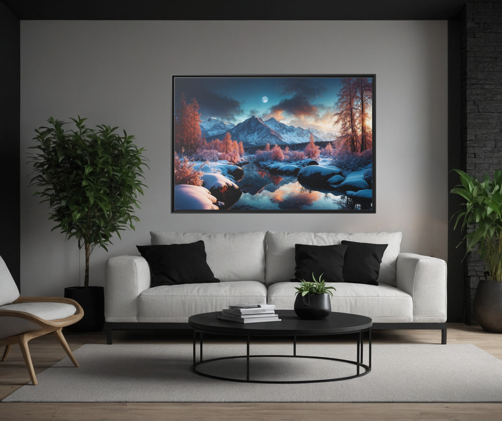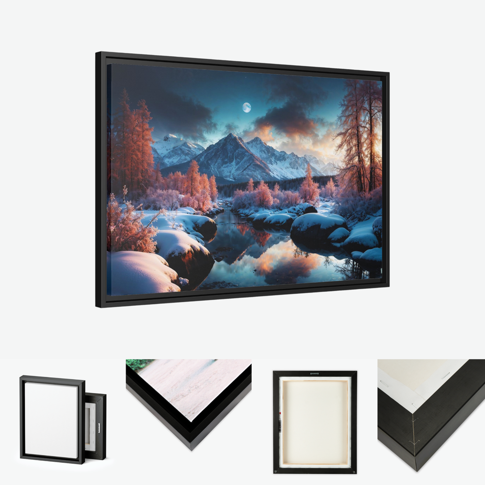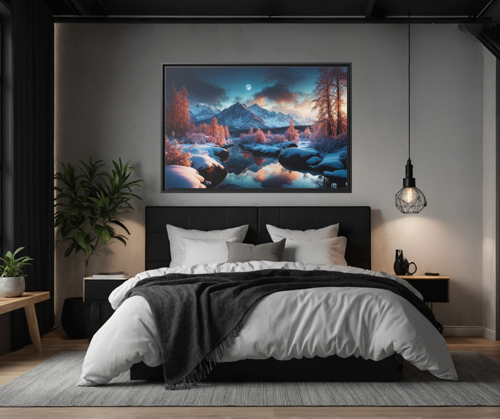 Surreal Winter Canvas Art in Wood Frame for Home or Office Decor