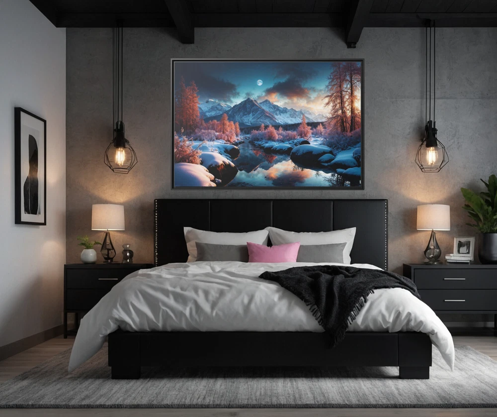 "Ethereal Winter Reverie" – Surreal Abstract Landscape Canvas Print Product Description: Step into a dreamlike world of tranquil beauty with "Ethereal Winter Reverie," an exquisite surrealistic abstract winter landscape by Hypnotik Creations . This mesmerizing piece blends soft pink and blue hues to create an otherworldly atmosphere, featuring snow-kissed mountain peaks, a serene reflective body of water, and a lush forest blanketed in winter’s embrace . The artwork’s unique color palette and ethereal composition evoke a sense of wonder, peace, and quiet contemplation , making it a breathtaking addition to any space. Expertly printed in HDR on museum-quality gallery wrapped canvas , this artwork is crafted using a premium cotton-polyester composite with a proprietary matte finish coating , ensuring vibrant, long-lasting colors and sharp, high-definition detail . Using UL-certified Greenguard Gold inks , which are non-toxic, non-hazardous, and non-flammable , this piece delivers exceptional image clarity while remaining environmentally friendly . The artwork is framed in a 1.25" solid pine wood frame with an elegant espresso finish , offering a sophisticated floating effect that enhances its modern appeal. The Forest Stewardship Council (FSC) certified wood ensures a sustainable and eco-conscious choice , perfect for those who appreciate both art and the environment. Designed for effortless display , this piece arrives ready to hang with pre-installed sawtooth hardware , making installation a breeze. Due to the precision-crafted production process , slight size variations of +/- 1/8" (3.2mm) may occur . To maintain its pristine condition, simply wipe the surface with a clean, damp cloth as needed. ✨ Key Features ✨ ✔ Dreamlike Winter Landscape – A surreal abstract scene featuring soft pink and blue hues, snow-capped mountains, lush winter forests, and a tranquil reflective lake . ✔ HDR Printing on Museum-Quality Canvas – Cotton-polyester composite with a proprietary matte finish ensures stunning vibrancy and crisp detail . ✔ Eco-Friendly, Non-Toxic Inks – Printed with UL-certified Greenguard Gold latex inks , safe for any space and environmentally responsible . ✔ Elegant Floating Frame in Espresso – 1.25" solid pine wood frame enhances the artwork with a modern, sleek aesthetic . ✔ Sustainably Sourced Materials – Forest Stewardship Council (FSC) certified wood frame promotes eco-conscious craftsmanship . ✔ Ready to Hang – Comes fully assembled with sawtooth hardware attached , allowing for hassle-free installation . ✔ Easy to Maintain – Simply wipe with a clean, damp cloth to keep your artwork looking fresh and vibrant . ✔ Precision-Crafted – Slight size variations of +/- 1/8" (3.2mm) may occur due to the production process. Let "Ethereal Winter Reverie" transport you to a peaceful, surreal winter landscape , filling your space with a sense of calm, beauty, and artistic sophistication . Perfect for any modern, minimalist, or dream-inspired interior , this stunning gallery-wrapped canvas is sure to captivate and inspire . 🌙❄️🎨 4o