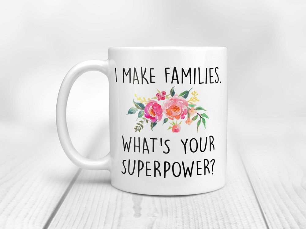 Surrogacy Mug Surrogate Mother Gift Surrogate Present I Make Families Mothers Product Details.. This high quality 11oz. ceramic white mug has a premium hard coat that provides crisp and vibrant color reproduction sure to last for years. Perfect for all hot & cold beverages. The highest quality printing possible is used. It will never fade no matter how many times you wash it. Material: 100% Ceramic. Print both sides. Dishwasher and Microwave Safe. High Gloss + Premium White Finish. Printed in the U.S.A. Personalized & Custom. We support personalized and custom mug to add custom, when placing an order, you can add notes to the "order note" in shipping address section. Also you can contact us directly via message. Shipping Info. Ready to ship in 1 to 2 business days, All products are made-to-order and proudly printed in the United States. Shipped by USPS and DHL, You will receive your order in 5-7 days. Replace & Refund. All products are defective during shipping broken, chipped will be replaced free of charge. You are not satisfied with the product, we will refund 100% money to you. If any other issues arise, please do not hesitate to message, we would be more than happy to assist you.