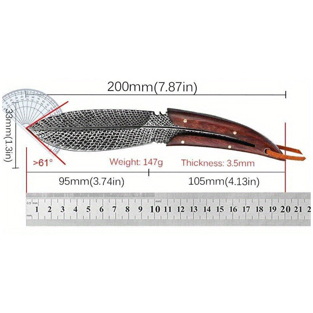 Specifications: Total length: 20cm Blade length: 95MM Width: 33mm Thickness: 3.5MM Technology: the surface is corroded with feathers. Weight 147G The package contains: 1 x Camping Knife 1 x Holster On Dec 16, 2024 at 01:01:38 PST, seller added the following information: On Dec 26, 2024 at 09:35:35 PST, seller added the following information: On May 13, 2025 at 02:39:15 PDT, seller added the following information: On Jul 10, 2025 at 17:47:59 PDT, seller added the following information: On Jul 15, 2025 at 17:46:17 PDT, seller added the following information: