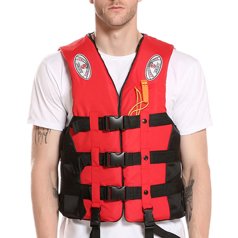 Survival Suit Life Jackets Buoyancy Aid Clothing Watersport Vest Durable Kids Specifications: 100% Brand new and high quality. Size:S(fit for child),M,L,XL,XXL,3XL Color: blue,red,orange,fluorescein yellow,army green,leaf Material: oxford cloth Applications: Boating,Surfing,Sailing,Windsurfing Fishing Ski,etc. Pattern:solid color Note: 1.Due to the light and screen difference, the item's color may be slightly different from the pictures. Please understand. 2.Please allow 2-3% error due to manual measurement.Please make sure you don’t mind before you mid. 3.Size doesn’t fit all.Please carefully check size chart and select the size based on your real size. Package:1 pcs Life Jacket Size Chart Tag Size Length Chest H eight W eight cm | inch cm | inch - - S 38cm | 14.9'' 80 * 90cm | 31.4'' * 35.4'' 100-135cm 25-34.5kg M 50cm | 19.7'' 90 * 105cm | 35.4'' * 41.3'' 155-168cm 34.5-60kg L 51cm | 20.0'' 92 * 105cm | 36.2'' * 41.3'' 170-175cm 60-75kg XL 52cm | 20.4'' 94 * 115cm | 36.9'' * 45.2'' 175-180cm 75-90kg XXL 53cm | 20.8'' 96 * 115cm | 37.7'' * 45.2'' 180-185cm 90-105kg 3XL 54cm | 21.2'' 98 * 125cm | 38.5'' * 49.1'' 185-195cm 105-120kg Note:1. 1cm=0.39 inch; 2. Item size information manual measurement may exist 1-3cm difference; 3. It is suggested that the size of Asia is small.
