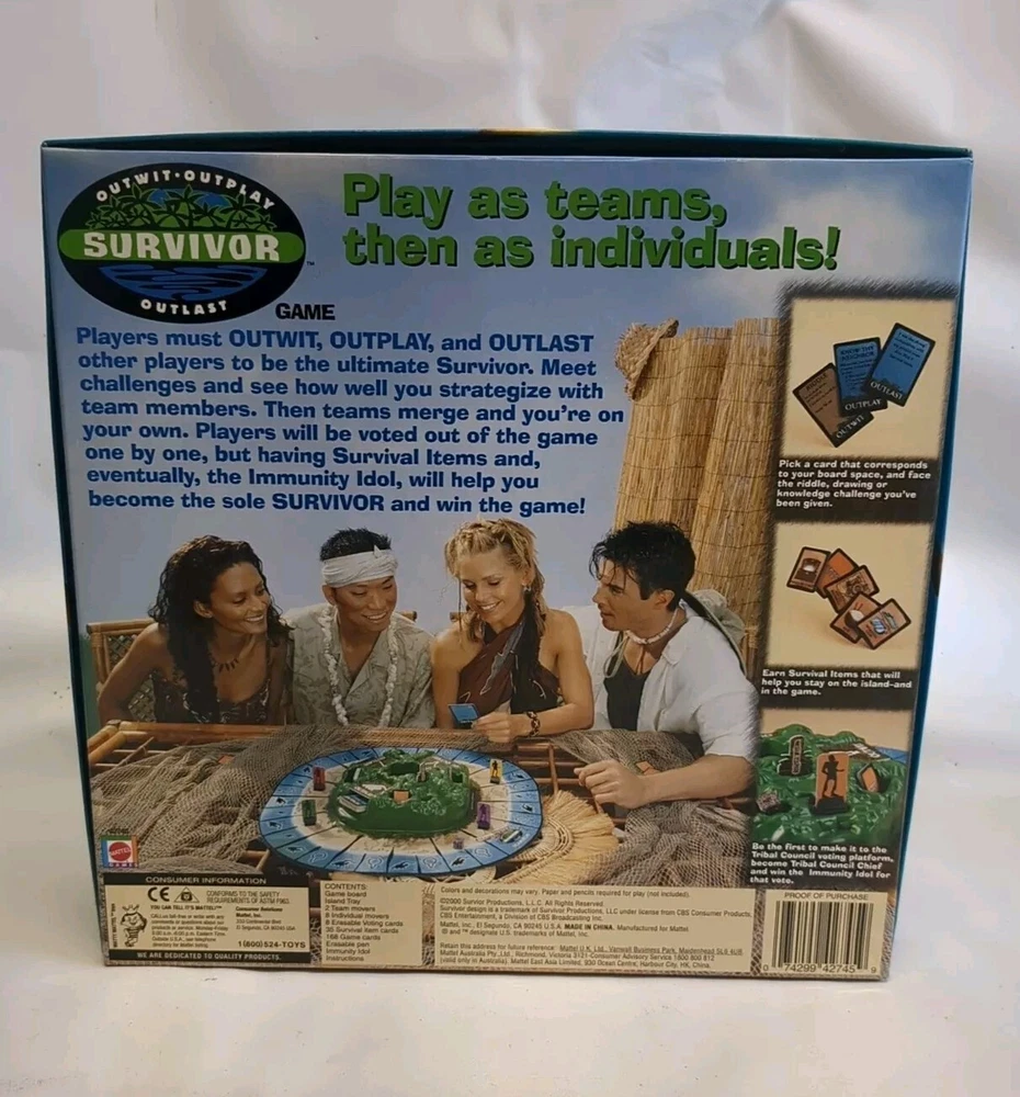 Experience the thrill of Survivor with this complete board game set from Mattel. With a theme of strategy, this game is perfect for 4 or more players aged 12 and up. The game includes a game board, pieces, cards, and instructions to make your gaming experience seamless. This Survivor board game is a must-have for fans of the TV show and offers hours of fun for both boys and girls. With its award-winning design and quality construction, it's sure to provide excitement and entertainment for years to come. Get ready to outwit, outplay, and outlast your opponents in this exciting game of survival!