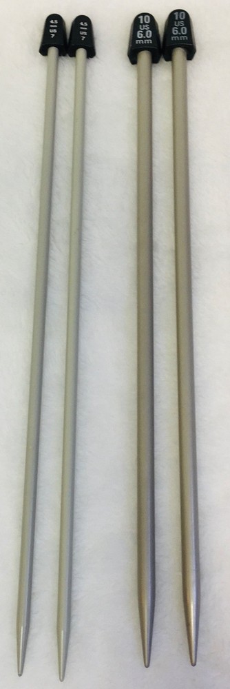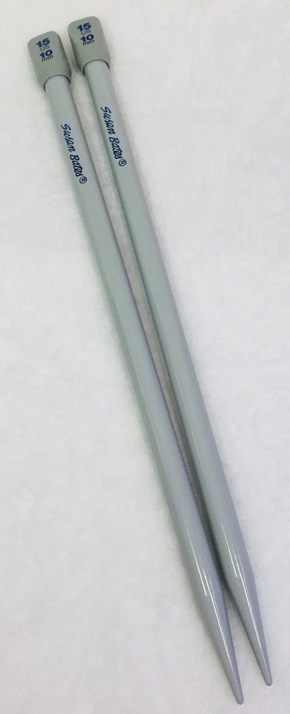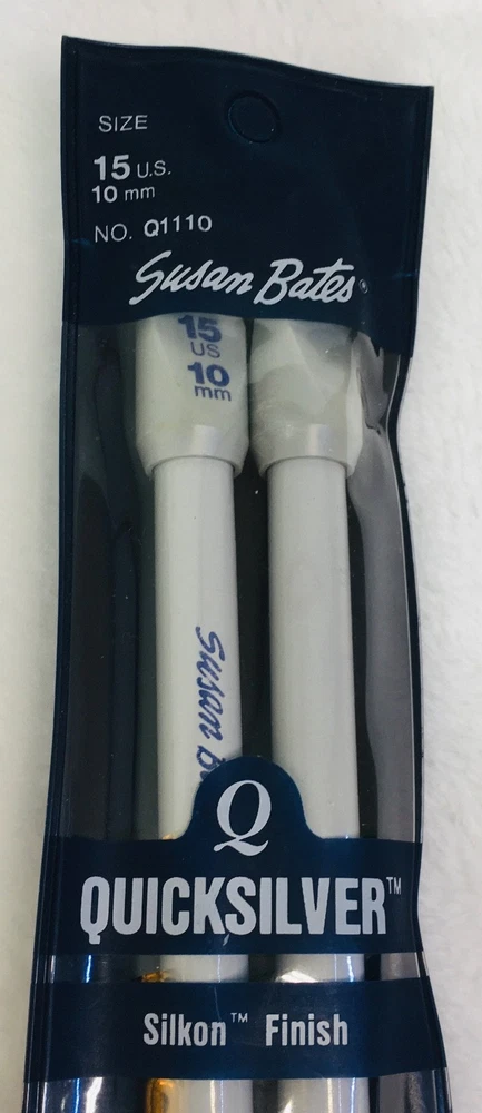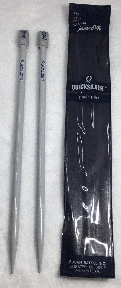 One (1) Pair of Susan Bates Quicksilver 10” Length Single-Pointed Knitting Needles Sizes US 11 (8mm) and US 15 (10mm) are being offered individually (separately from each other). Combined shipping is available if you want more than one size (please read last photograph to learn how). Please Use Drop-Down To Choose The Size You Would Like. There are only two sizes left now! *** I refreshed and updated this listing today, in order to get these sold and close out this listing. * Condition: Preowned in good gently used condition. * These needles have always been stored in my craft room under heat and air. * Sizes11 and 15 come in their original packaging (blue vinyl reusable pouches), and were made in the United States. Product Details: * Brand: Susan Bates * Distributor: Coats & Clark * Model: Quicksilver * Material: To minimize weight and enhance stitching comfort (minimize wrist fatigue) size 11 and 15 have a plastic shaft with silkon finish. This finish is nice and feels light weight. You will not be disappointed. * Quicksilver is a premium label from Susan Bates. * All Quicksilver needles are light gray in color. * Finish is a result of a special iodization process which also makes Quicksilver slightly smoother and more durable than some of the other brands of needles. Please see a ll the photos of these knitting needles - click on them to zoom in and make them larger. These photos are the best description of these knitting needles, and they explain how to COMBINE SHIPPING! I make every effort to accurately describe items, and photograph the true color, but if I misrepresented an item, please contact me first through eBay, so that I may resolve the situation, before leaving neutral or negative feedback. I strive to keep my 100% feedback rating. Thank you for looking at my listings and being supportive of my efforts. My home is smoke and pet free.