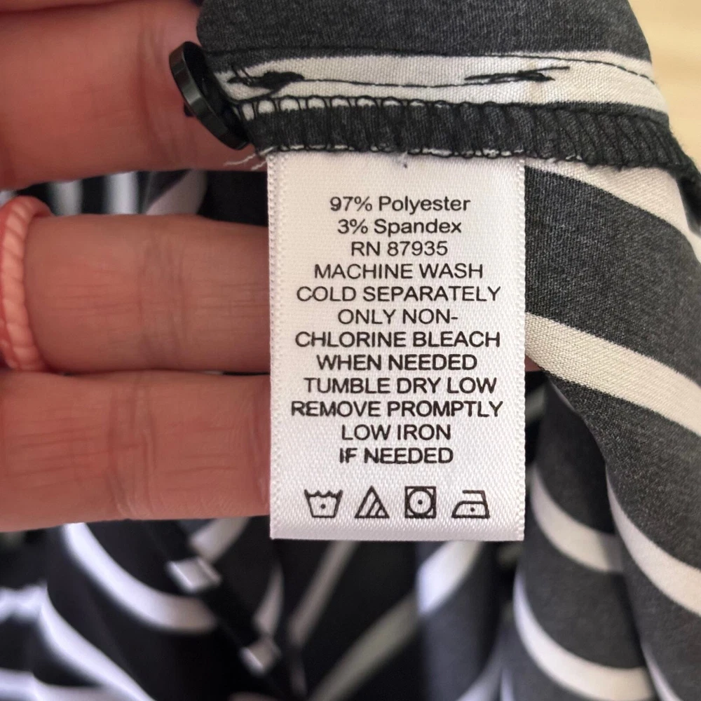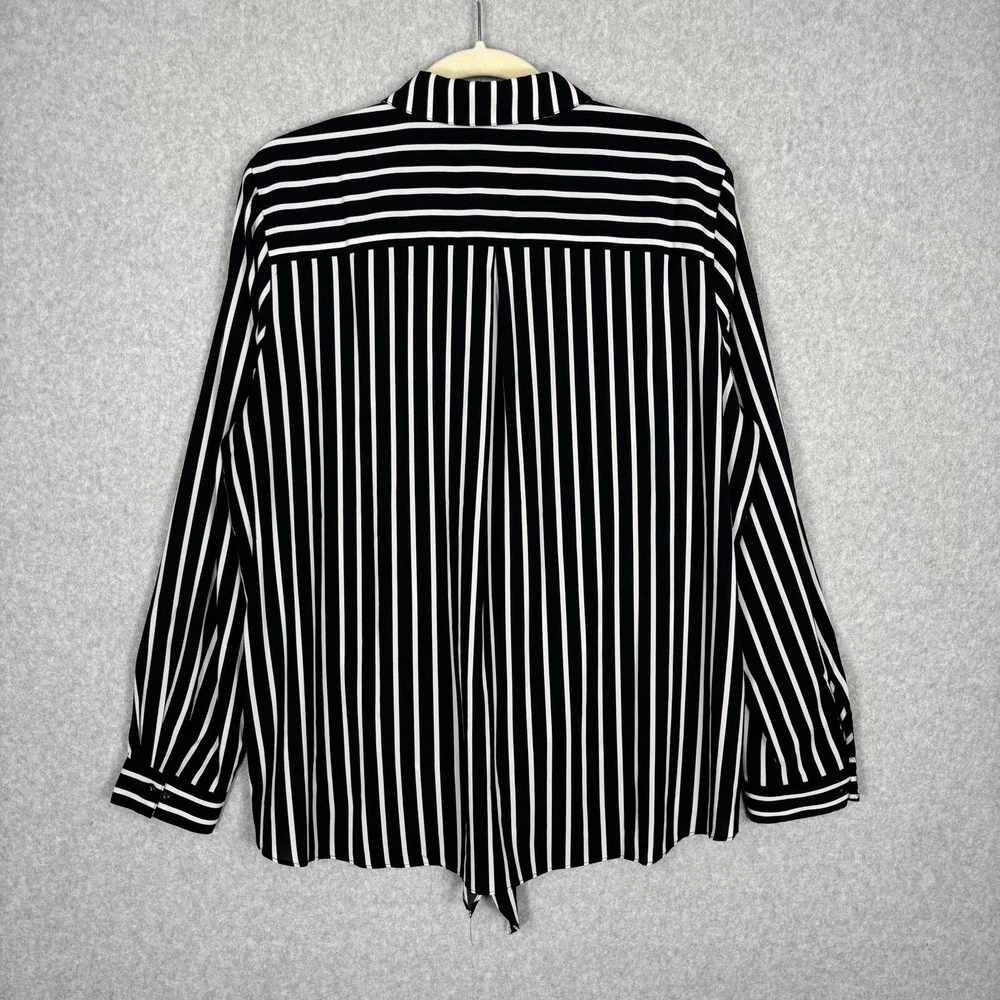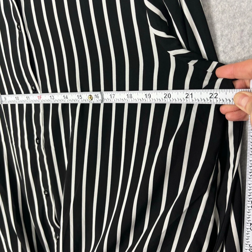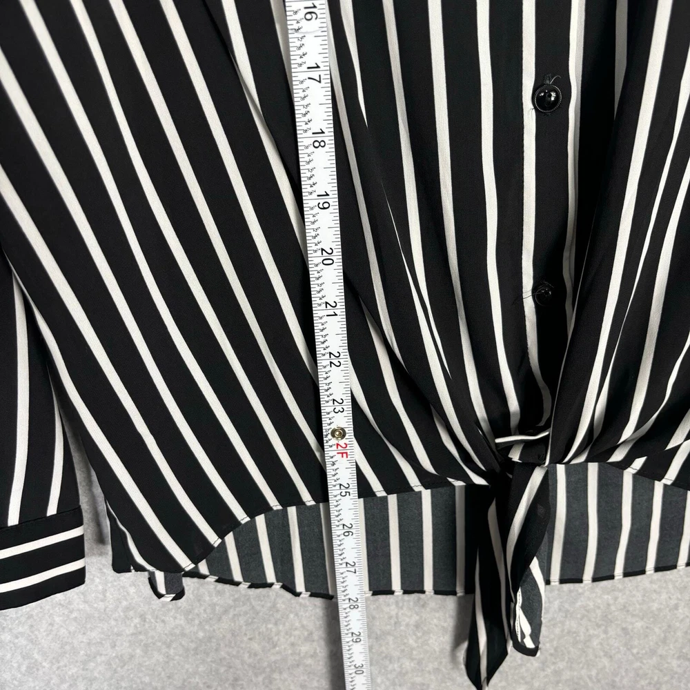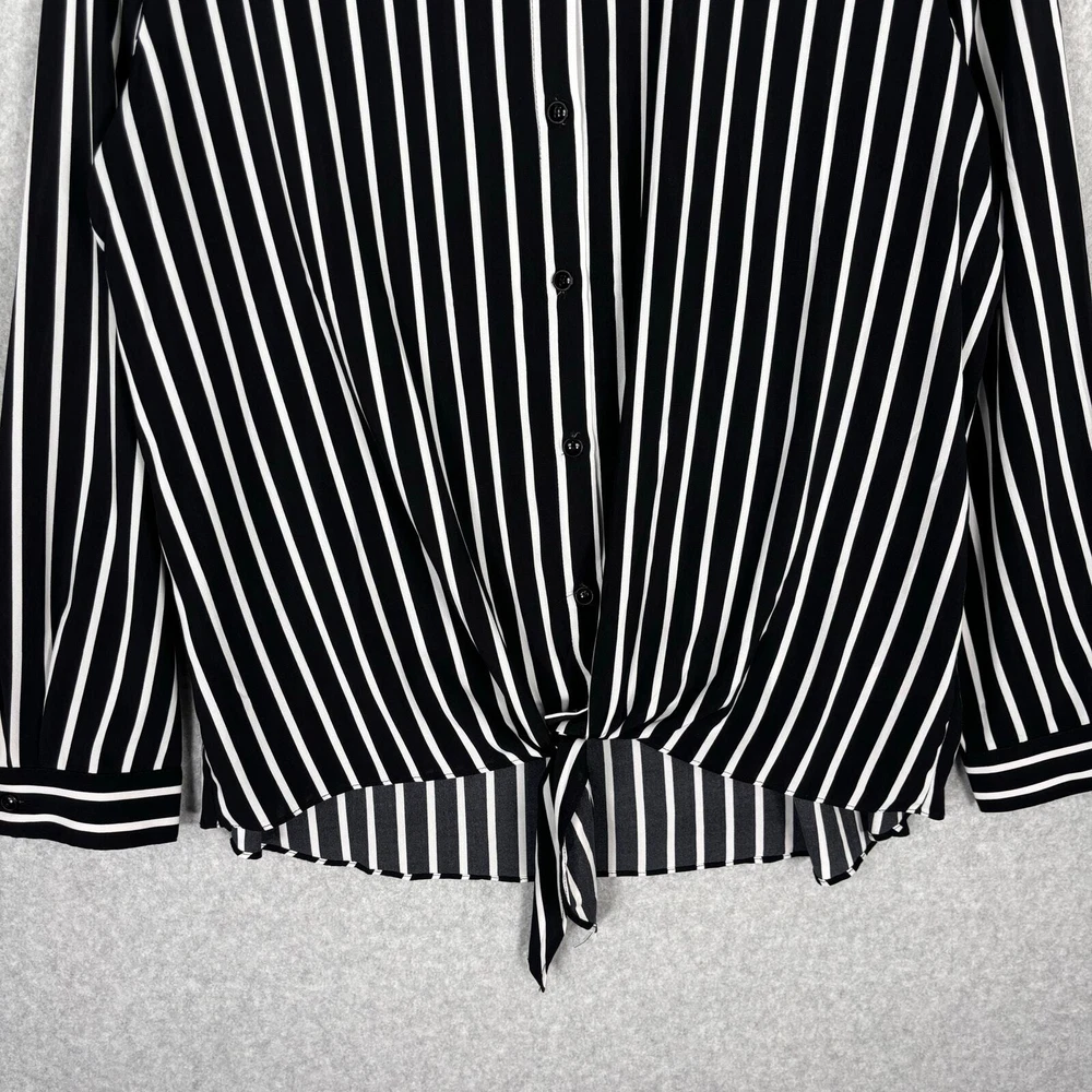 Susan Graver Shirt Women 12 Black White Striped Tie Hem Front Silky Soft Blouse Top Career Button Collar Corp Career Work Office Business Church Long Sleeve Tunic EXCELLENT Pre-owned condition: minimal to no signs of wear, no stains or holes SKU 5562 **Please see all pictures for full item condition, details, and approximate measurements** - Ships Same/Next Day, Professional Seller, Offers Welcome, Like or watch for price drops - Item in photos is exact item you will receive - I list new items daily, be sure to browse my store/closet for more items - Bundle pricing and combined shipping available for additional savings - Feel free to send a message