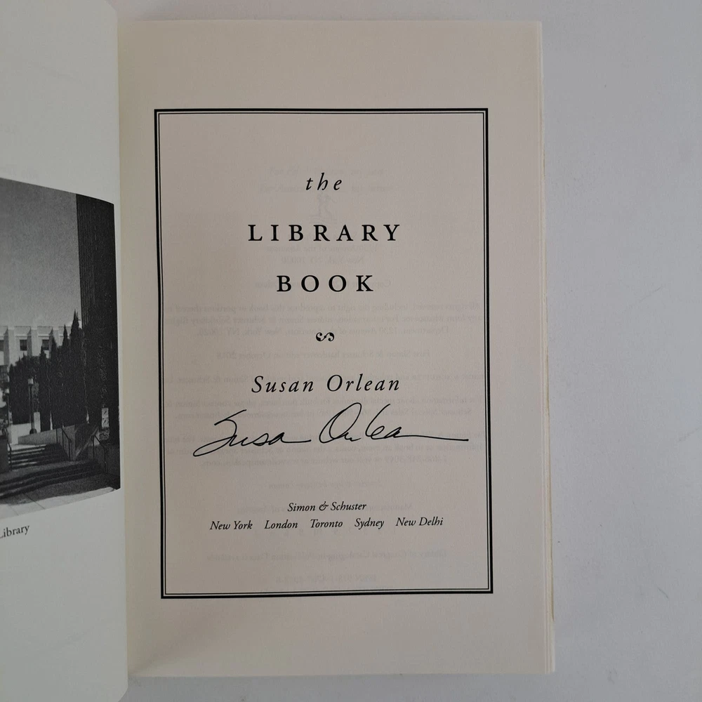 THE LIBRARY BOOK [Signed] Author: Orlean, Susan Title: THE LIBRARY BOOK [Signed] Publication: New York, New York: Simon & Schuster, 2018 Edition: First Edition, First Printing Description: Octavo, 317 pages. In Very Good condition. Spine is red with gilt details, red and gilt lettering. Boards have mild shelving wear along spine head, spine tail, front tail and rear joints. Signed flat on title page by Susan Orlean. Shelved in hallway. Seller ID: 1389746 Subject: Books on Books & Reference Welcome to the eBay store of Second Story Books! DC's Oldest Rare and Used Bookstore, Second Story Books operates two open shops in the Washington D.C. metropolitan area. We have an extensive internet presence and provide accredited appraisals member ASA. This listing was created by Bibliopolis.