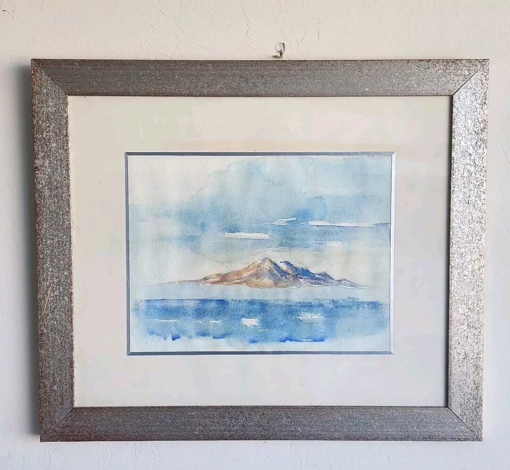 Susenn Signed Water Color Painting Landscape Island Original Art Framed 20"x17". Condition is Used. Shipped with Economy Shipping.