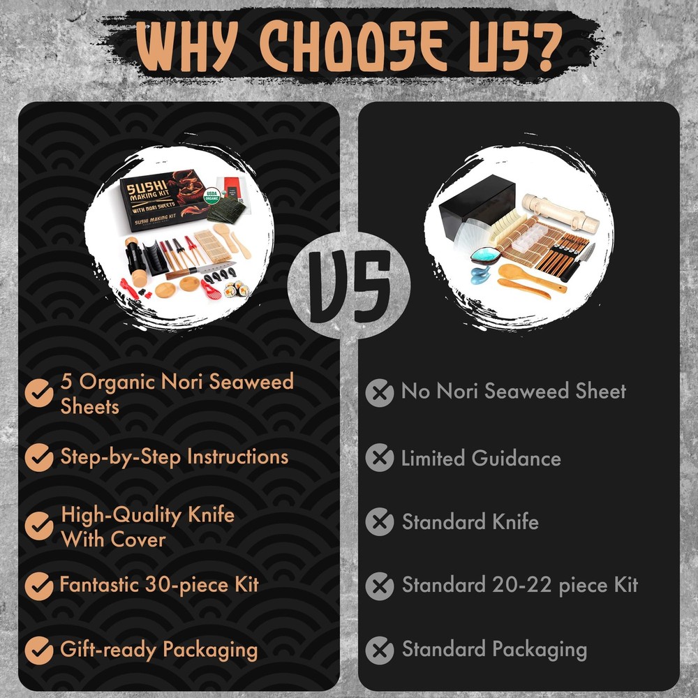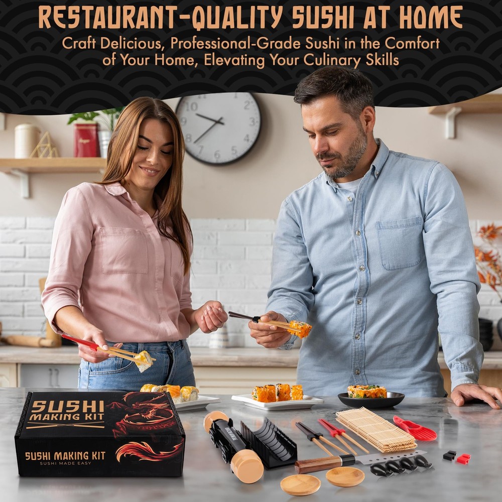 Introducing our Ultimate Sushi Making Kit, the perfect choice for both novice sushi enthusiasts and seasoned pros! Our comprehensive sushi kit includes all the essential tools you need, from the revolutionary bazooka sushi roller kit to the versatile bamboo roller, mat, mold, and sushi making kit for beginners. With this all-in-one package, crafting delicious homemade sushi rolls has never been easier. Crafted with precision and designed for convenience, our sushi maker kit boasts professional-grade tools like the sushi bazooka sushi maker and bamboo sushi rolling mat, ensuring flawless sushi rolling and shaping every time. Ideal for DIY sushi aficionados and beginners alike, our kit offers a seamless experience with user-friendly features like the Sushi Cannon and Sushi Tube. Embarking on your sushi-making journey? Look no further than our sushi kit for beginners, equipped with everything you need to get started. Complete with a comprehensive sushi making set, including a recipe book, sushi mat, and sushi maker roller, this kit sets you up for success from day one. Elevate your sushi-making experience with premium materials and top-notch tools, designed to inspire creativity in the kitchen. Ready to take your sushi game to the next level? Our premium beginner sushi making kit deluxe is tailor-made for discerning sushi enthusiasts. With our professional sushi maker kit, you'll have access to the tools necessary to create restaurant-quality sushi at home. It’s designed to inspire creativity and confidence in the kitchen, making it the perfect choice for sushi gifts for sushi lovers. Whether you're a professional chef or just starting out, this deluxe sushi kit will turn your home into a sushi-making haven. DISCOVER THE ULTIMATE SUSHI-MAKING EXPERIENCE: Dive into sushi creation effortlessly with our comprehensive sushi kit. Perfect sushi maker kit for beginners and sushi lovers, it includes all essentials from sushi bazooka to bamboo rolling mat, ensuring seamless sushi making at home. CRAFT PERFECT SUSHI ROLLS: Say goodbye to uneven rolls with our sushi bazooka kit. Ideal for busy moms, work at home moms, or even food vloggers, this innovative sushi gift for sushi lovers guarantees consistent results, revolutionizing your sushi making game. EMBRACE AUTHENTIC TRADITION WITH BAMBOO MAT: Immerse yourself in sushi-making heritage with our premium Bamboo Sushi Rolling Mat. Crafted from sustainable bamboo, this sushi set offers the perfect surface for precision rolling, ideal for Japanese food lovers and DIY enthusiasts. BEGIN YOUR SUSHI-MAKING JOURNEY: Our sushi making kit for beginners is also perfect for moms seeking culinary adventures. Whether you're experimenting or expanding your repertoire, this kit provides everything you need to create delicious sushi rolls. ELEVATE YOUR SKILLS WITH PRECISION TOOLS: Take your sushi creations to the next level with our bazooka sushi roller kit. Designed for accuracy and convenience, these tools are essential for achieving professional-grade results, catering to beginners and seasoned pros alike.