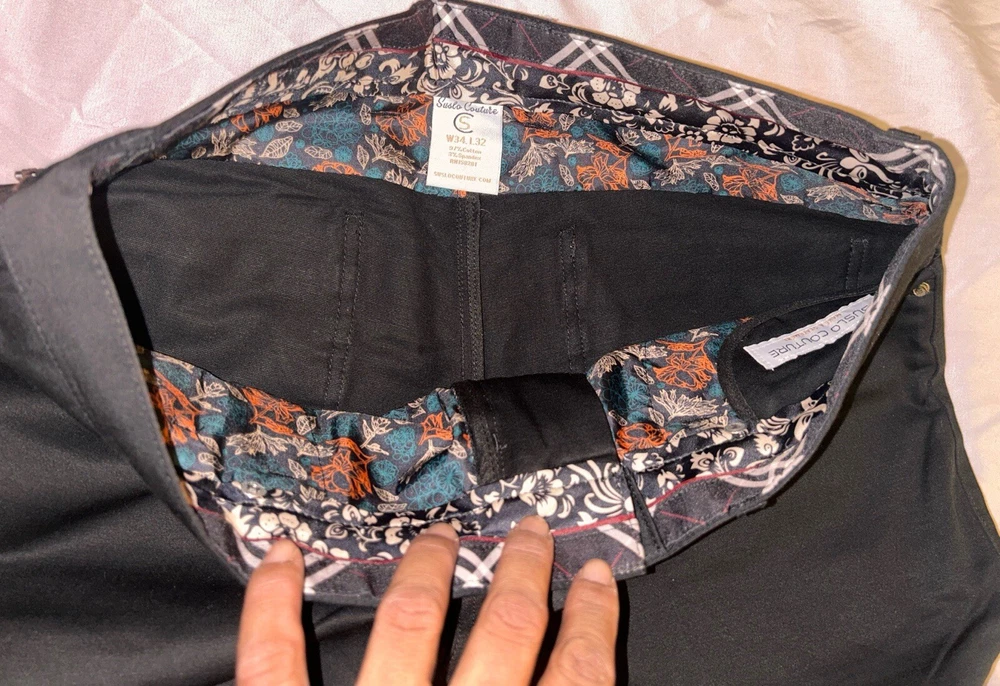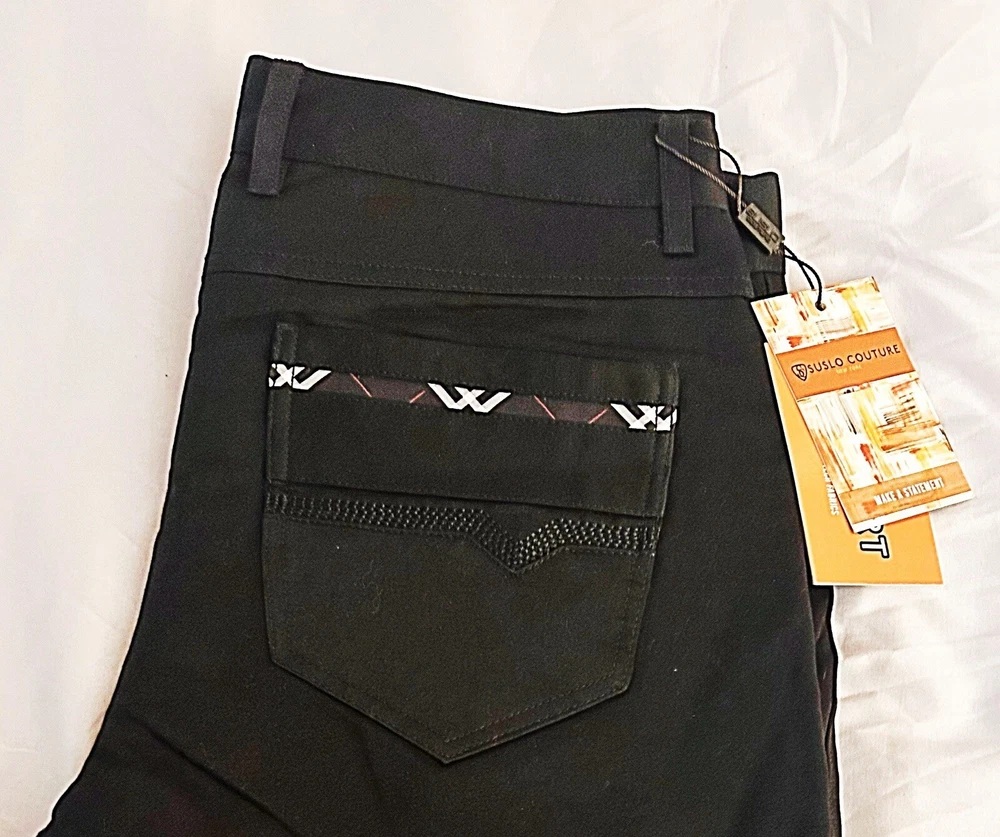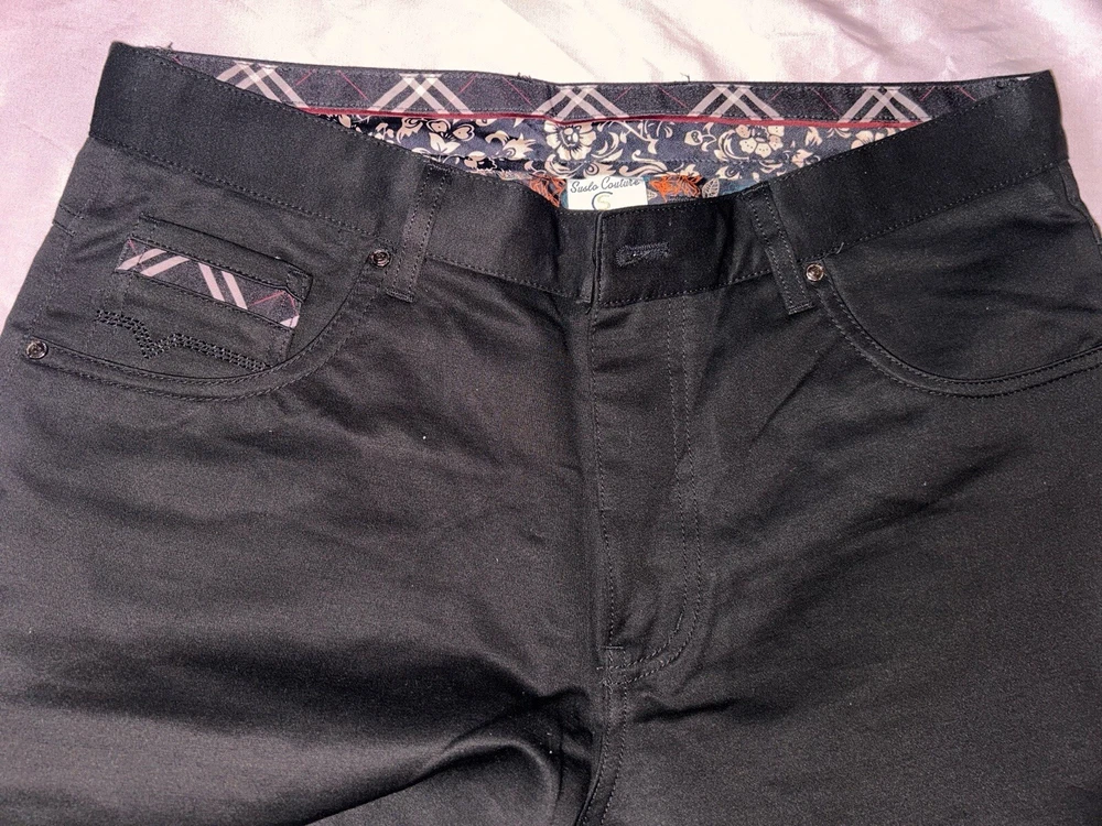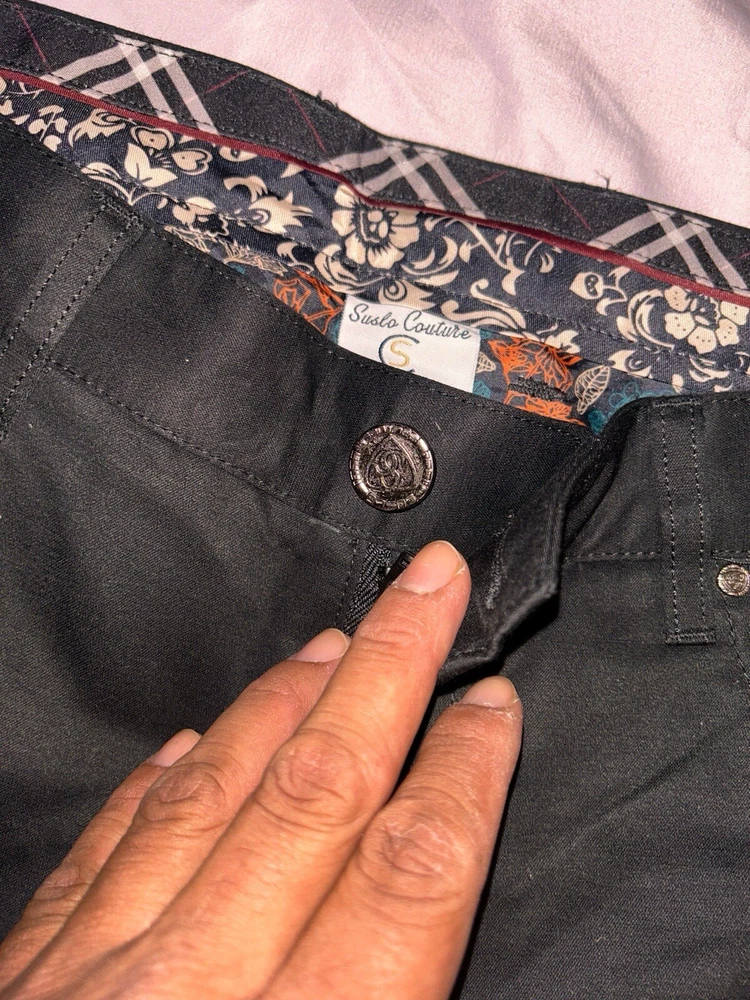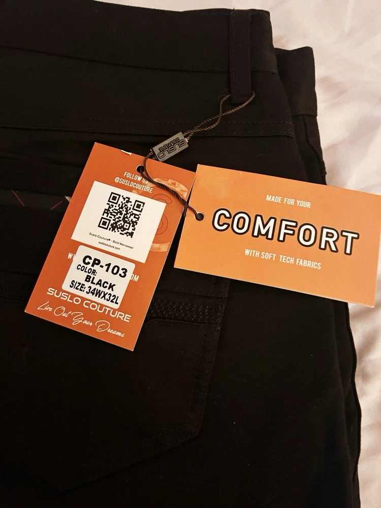 Elevate your wardrobe with these stylish black dress pants from Suslo Couture. Made with comfortable cotton fabric and featuring a flat front design, these pants are perfect for both casual and business occasions. The pants have a regular fit and a straight leg style, with a waist size of 30 inches and an inseam of 32 inches. The pants come with a convenient zip and button closure, as well as five-pocket design for ample storage. The pants are easy to care for and can be machine washed. These pants are a great addition to any wardrobe, and are sure to become a staple in your collection.