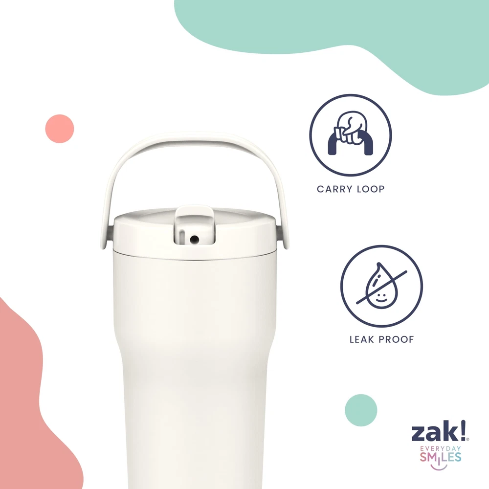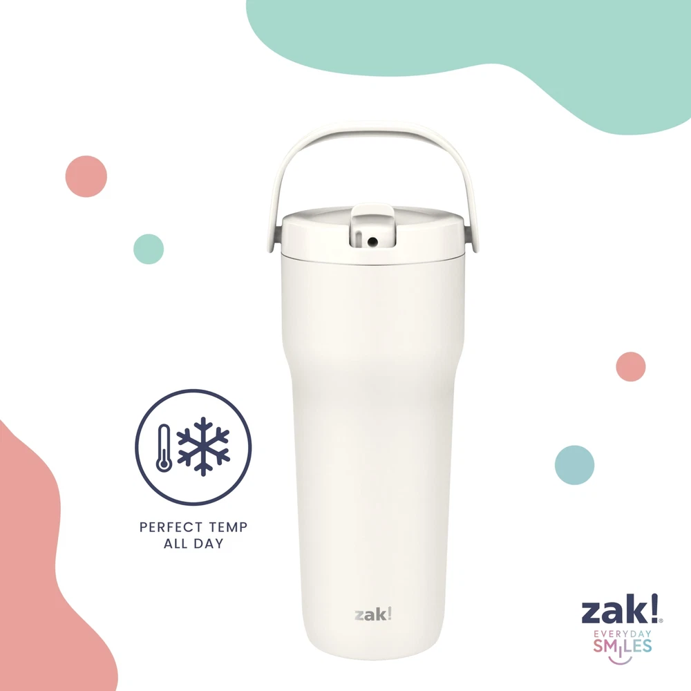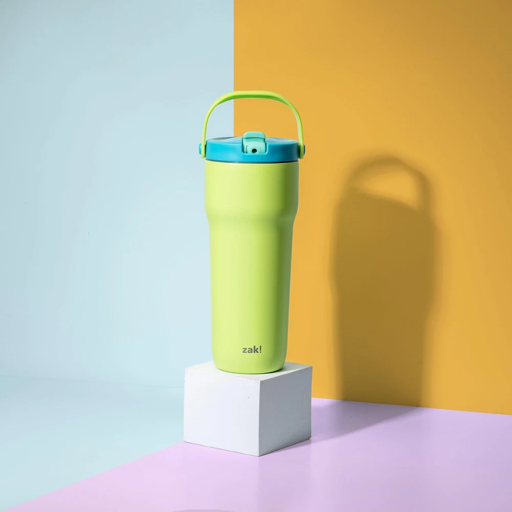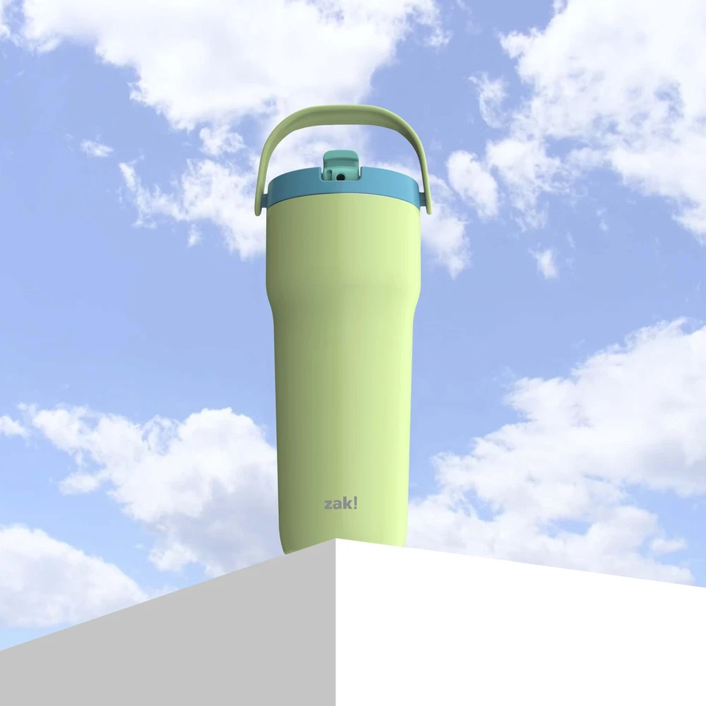 This insulated travel tumbler from zak! designs is the perfect choice for daily hydration! Durable Materials: The 30-ounce tumbler is made with food-, 18/8 stainless steel. All the materials are completely BPA free and sturdy enough to stand up to everyday wear and tear. Vacuum Insulation: The tumbler has vacuum insulation to keep cold drinks cold for hours. The double-wall construction also stops condensation from forming on the outer walls, booting messy water rings out of your life. Flip Spout: The screw-on lid has a flip-up spout that keeps sipping simple and won't leak when it's fully closed. Great for On the Go: The tumbler has a wide bucket handle that gives you a secure and comfortable grip, so it's easy and convenient to carry while you travel. Specifications: 30 oz capacity. Made of durable, food-stainless steel. BPA-Free - zak! is committed to safety. Lid is dishwasher safe, tumbler is top rack dishwasher safe. Do not microwave. Length: 4.44-inch, Width: 4.48-inch, Height: 10.2-inch. Color: Key Lime. SIZE & MATERIAL: This zak! tumbler holds 30 ounces and measures 4.44 by 4.48 inches wide and 10.2 inches tall. It's made with food-, 18/8 stainless steel, which is both sturdy and BPA free, and everything is top rack dishwasher safe for an easy clean. VACUUM INSULATED: The travel tumbler has vacuum insulation to keep drinks cold for hours, and double-wall construction that stops condensation from forming on the outside. No more messy water rings! CONVENIENT SPOUT: The flip-up spout keeps sipping simple and won't leak when it's fully closed. CARRY HANDLE: The lid includes a wide bucket handle for a secure and comfortable grip, so the tumbler is easy to carry on the go. LIFESTYLE FRIENDLY: zak! designs tumblers are the perfect choice for your daily routine! This stylish drinkware is fully reusable—no more disposable cups—and great for staying hydrated all day long.