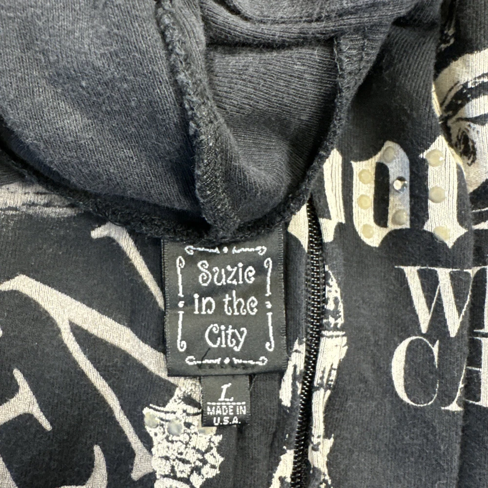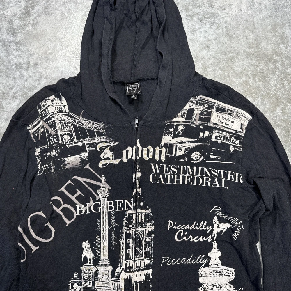 Suzie In The City Y2K Womens London England Hoodie Full Zip Grunge Size L