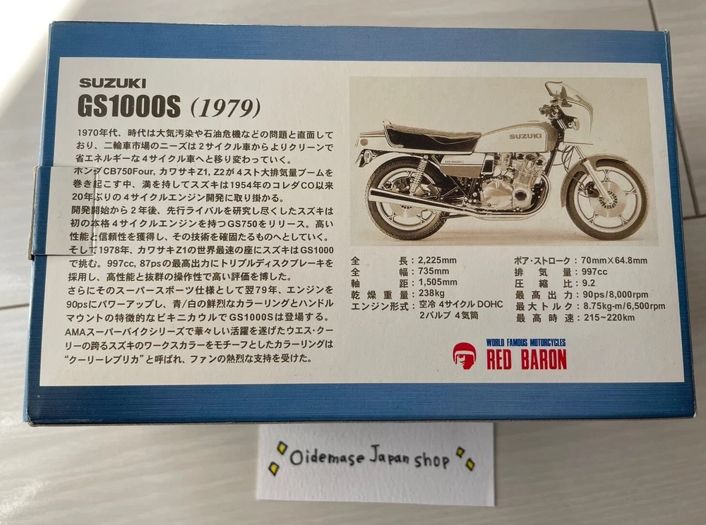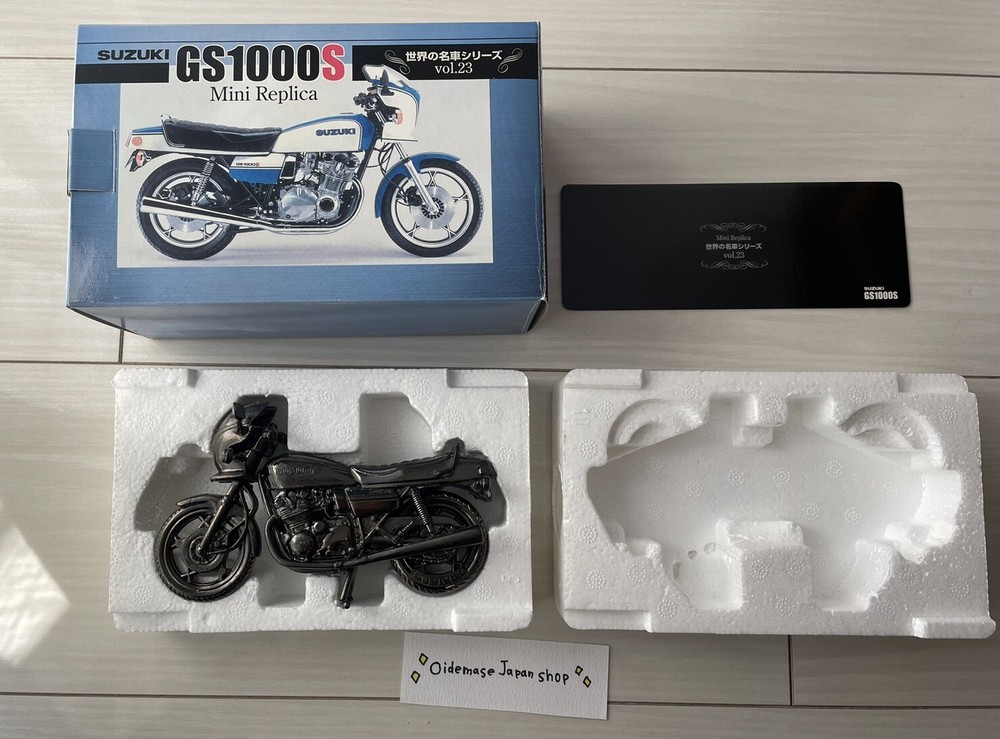 World Famous Motorcycles Series Vol.23 SUZUKI GS1000S Figure Mini Replica Description Used This is a metal replica model. Only the front fork can be moved left and right. The stand, wheels, and other parts do not move. This is a used item and may be scratched or dirty. Please purchase only if you understand that this is a used item. Shipping We will ship within 5 business days. The parcel will be delivered by FedEx/DHL with a tracking number from Japan. Please check the handling time. It usually takes a few days to one week for the product to arrive. International Buyers - Please Note: Import duties, taxes, and charges are not included in the item price or shipping cost. These charges are the buyer's responsibility. Please check with your country's customs office to determine what these additional costs will be prior to bidding or buying. Thank you for your understanding.