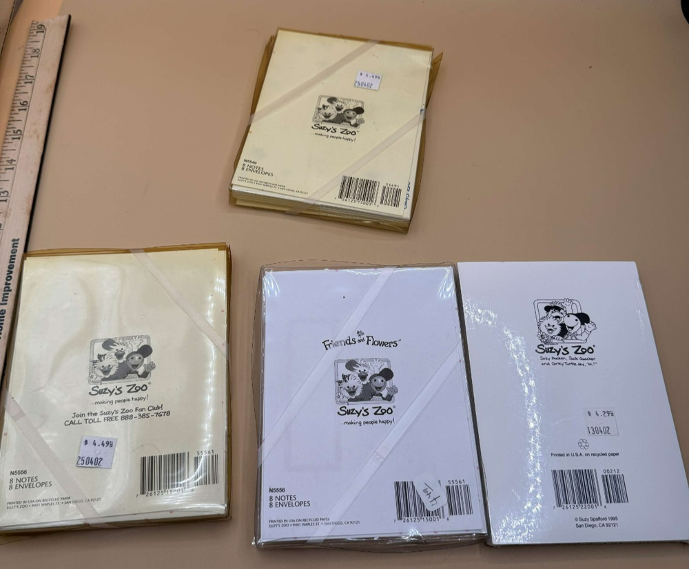 Suzy’s Zoo Note Cards Lot of 4 Friends and Flowers Stationery 1995 New Sealed