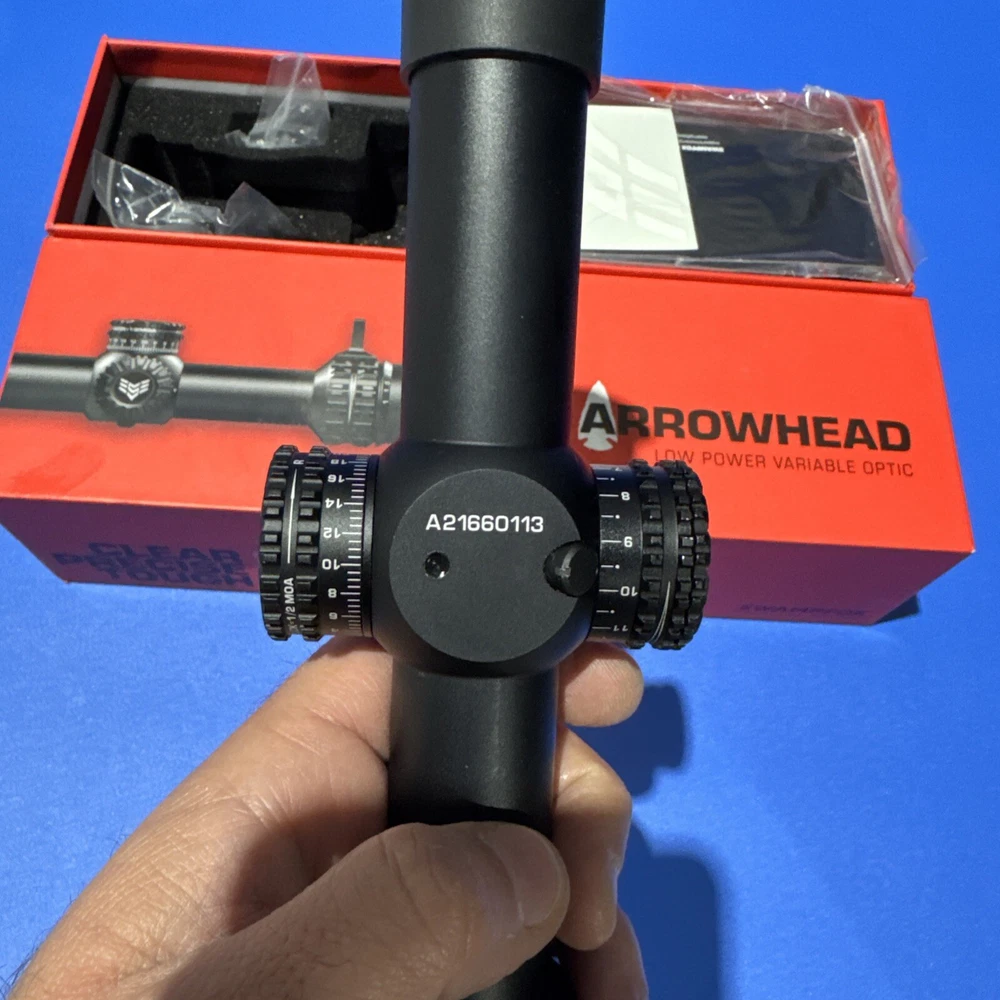 Arrowhead is our flagship LPVO (low power variable optic) series that exceeds all requirements for end-user applications. Every Arrowhead comes with push/pull locking turrets to ensure accuracy and prevent unintentional adjustments. Arrowhead also features a brighter sight picture, expansive field of view, and excellent resolution. The Arrowhead is an excellent choice for both close quarters and long-distance engagements. State-of-the-art optical design creates a wider field of view without sacrificing eye relief. Push/ Pull locking turrets lock in any position to prevent unwanted adjustments without using tools. Zero resettable using a coin or screwdriver. True 1x user experience with a flat, fast sight picture, great eye box and brightness even at full magnification. 12 red reticle illumination brightness level s, 2 are super low light compatible. "OFF" detents between each brightness level. Included throw lever bolts directly to the magnification ring.