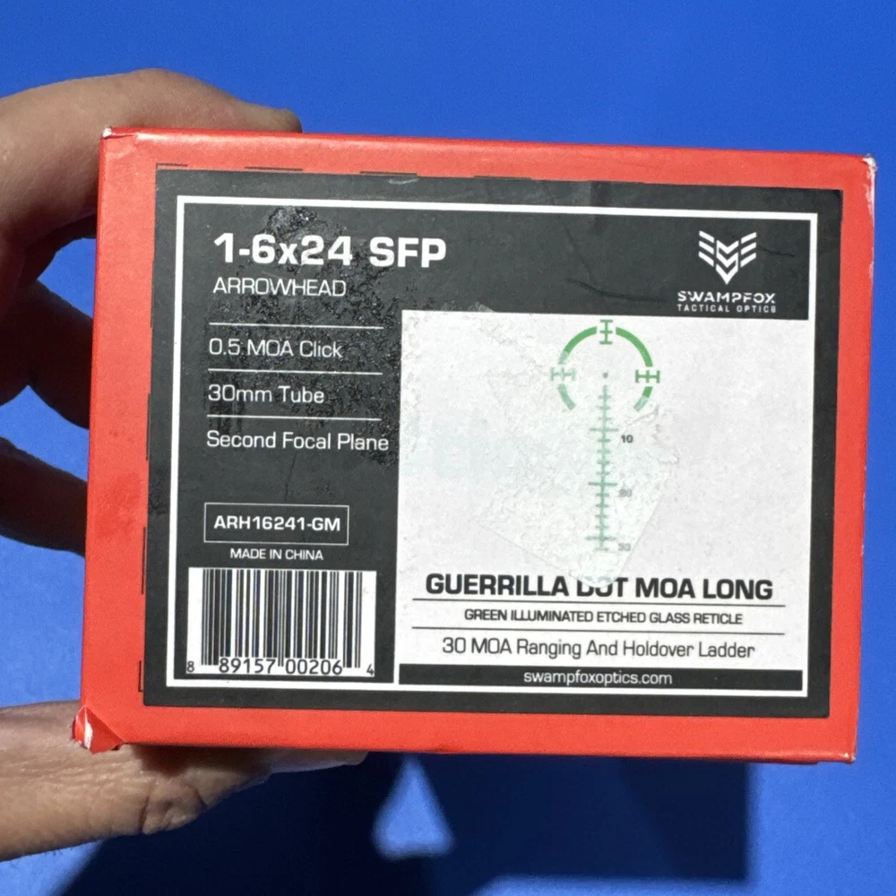 Swampfox Arrowhead Tube scope 1-6X24 SFP IR Green Dot MOA 30mm ARH16241-GM