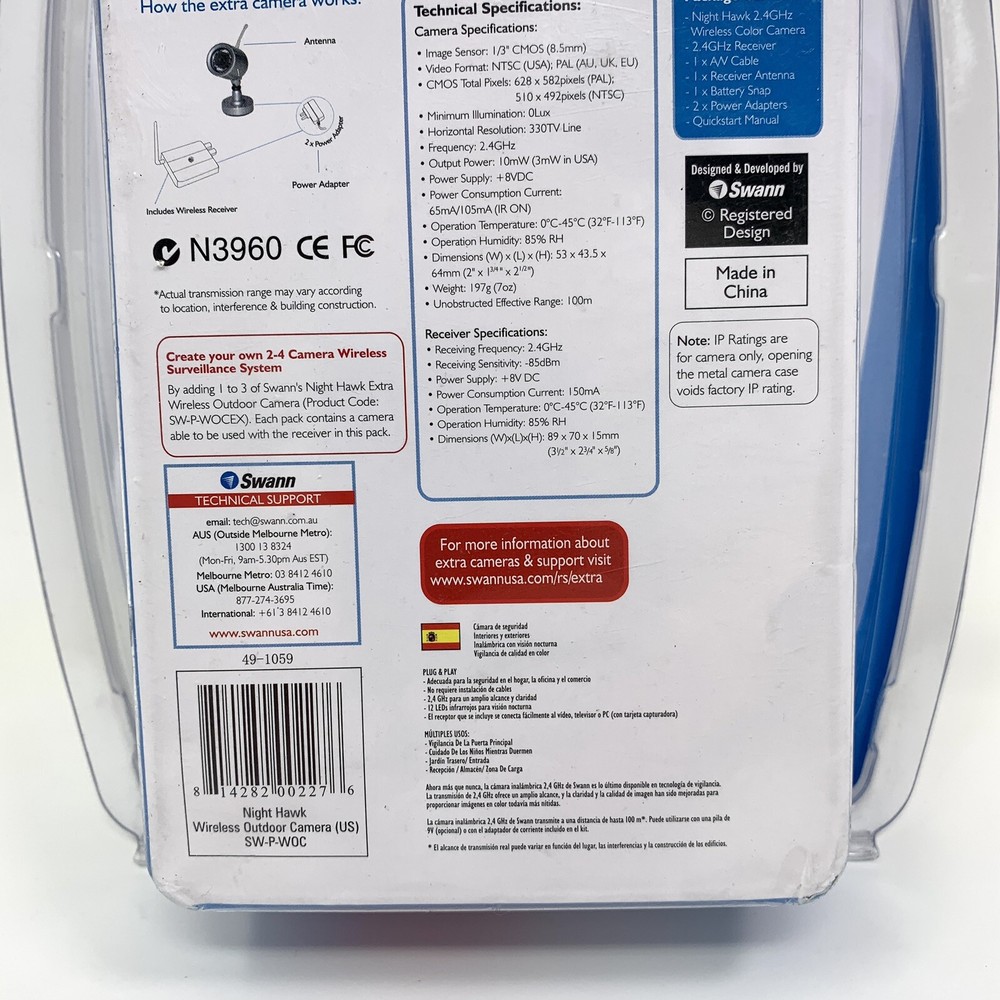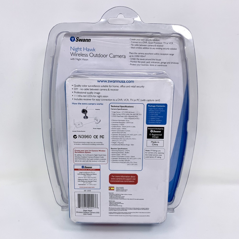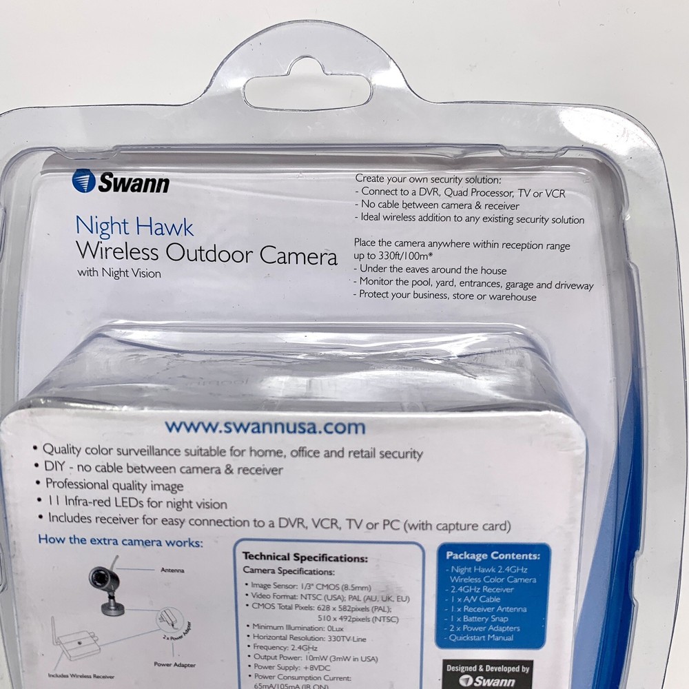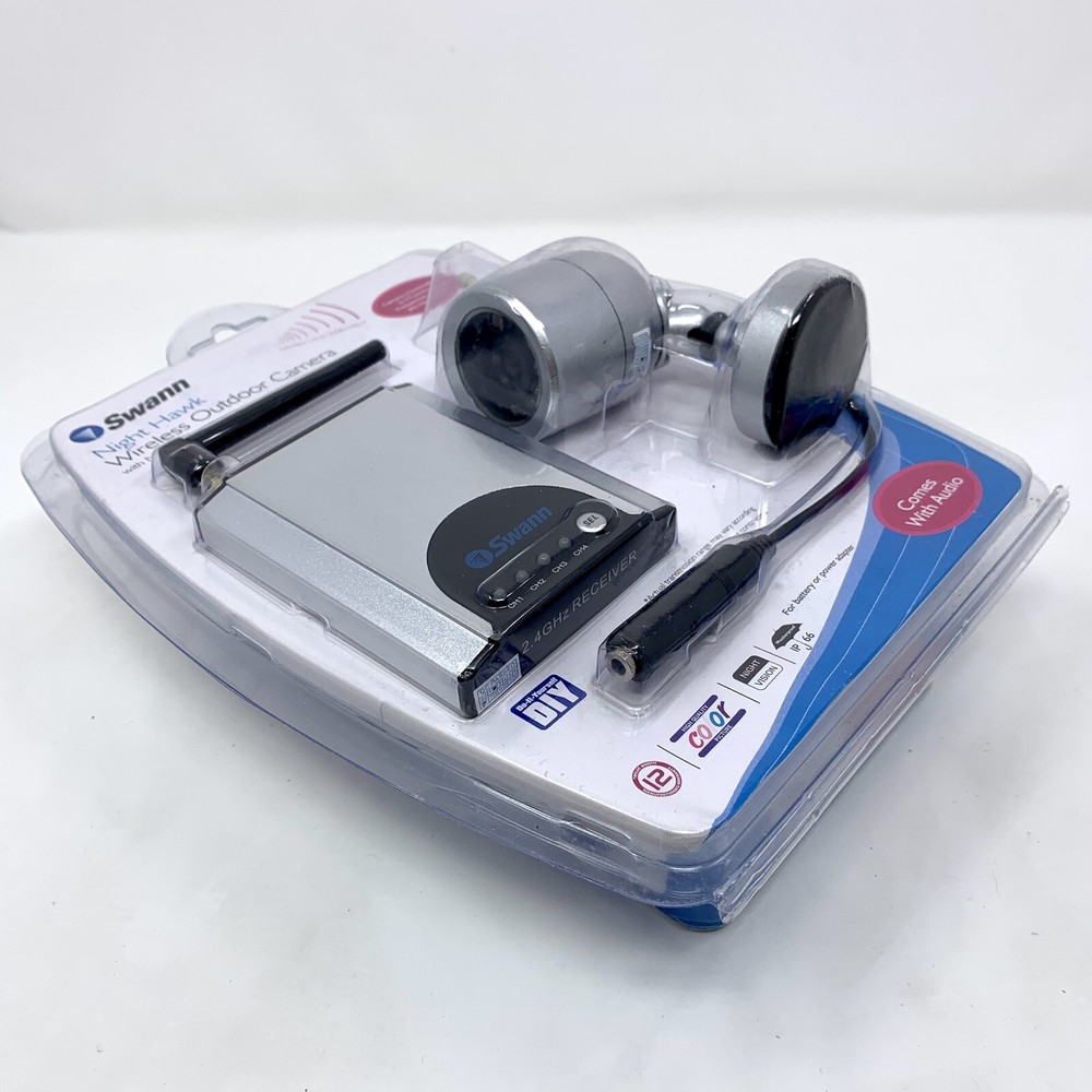 Swann Night Hawk Wireless Outdoor Camera & Receiver with Night Vision - NEW New in package. Please choose economy or priority shipping in the options. Feel free to contact me with any questions, I'm happy to help.