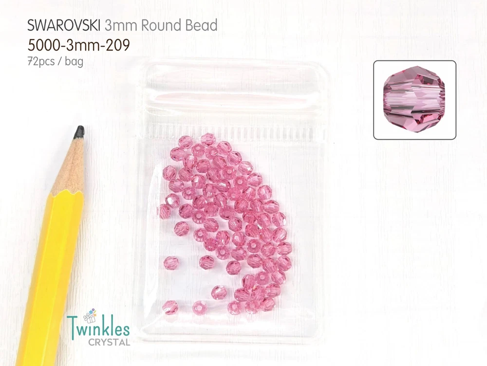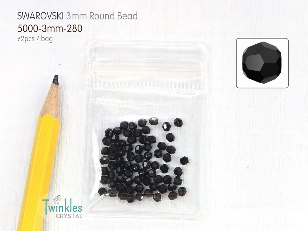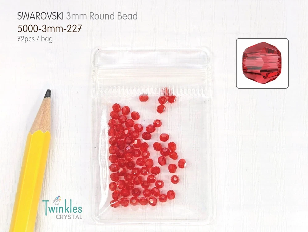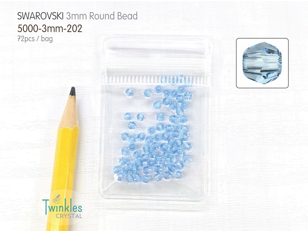 Swarovski Crystal Beads Round Beads Item No: 5000-03-Color Item Name: Swarovski Classic Bead Color: U Pick Condition: Brand New Brand : Swarovski Beads Shape : Round Beads Bead Size : 3 mm Bead Hole: 0.8mm Package : 72pcs in Zip lock Bag Weight: 10 grams Made in Austria ** We guarantee the style is the same as shown in the pictures ** We accept returns within 30 days in original condition