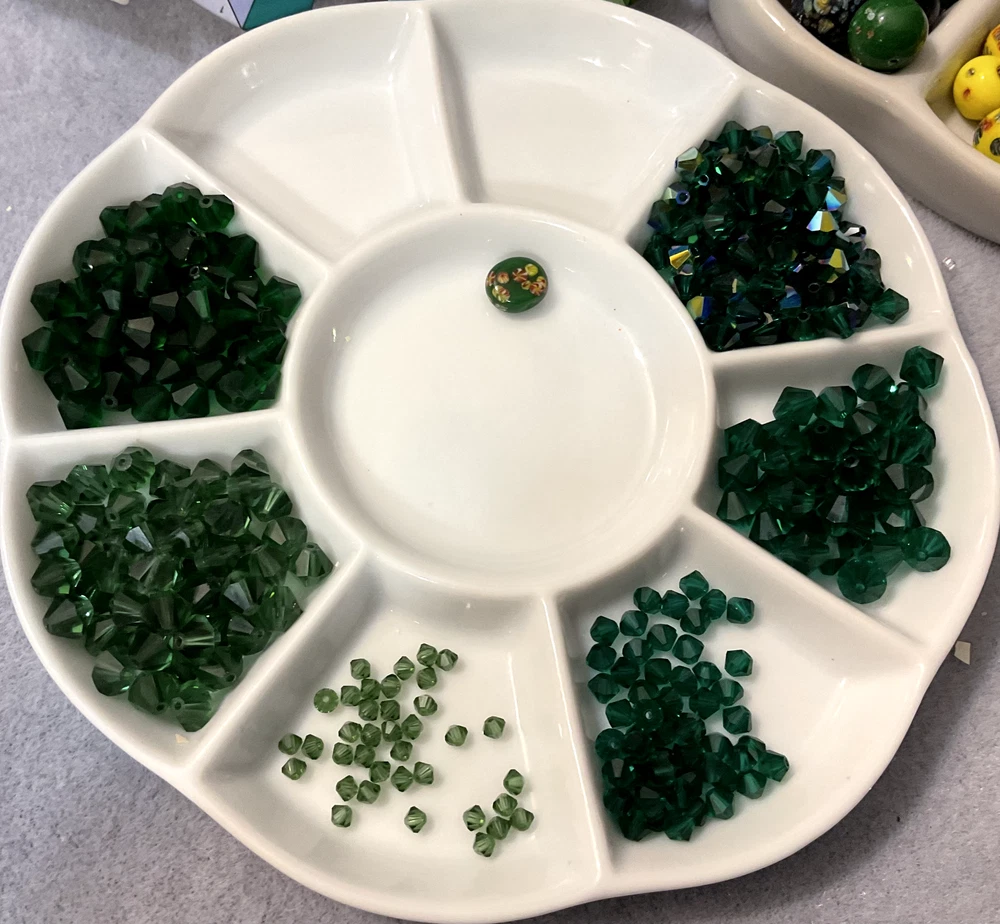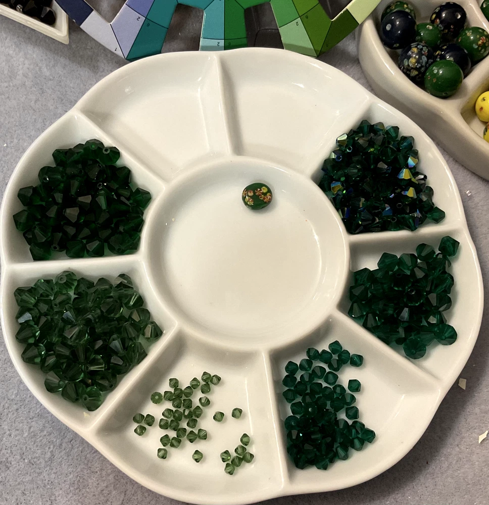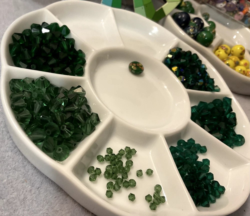 Vintage Swarovski Bead Lots inspire your unique creations to stand out while offering the air of exclusivity your Bead Art Jewelry Designs desire. Swarovski 5301 Crystal Bead LOT Bicones in AB Emerald / Green 3mm 5301 Transparent Green, 6mm 5301 Transparent Green, 4mm 5301 Transparent Emerald Green, 6mm 5301 Transparent Medium Emerald Green , 6mm 5301 Transparent Emerald Green, 6mm 5301 Transparent AB Emerald Green Additionally, this bead lot comes in Various sizes of Flip-Top Tube bead storage containers. My Swarovski Crystal & Czech Glass Bead Lot Collections offer significant savings, featuring various beads and crystal sizes in one bead lot, with postage savings alone - as postage continues its meteoric rise - savings that you can put towards ordering the best in quality beads and beading supplies for your Bead Art Jewelry Designs. Bead Lot includes what's listed/pictured and Flip Top Tube packaging: 3mm 5301 Transparent Green 6mm 5301 Transparent Green 4mm 5301 Transparent Emerald Green 6mm 5301 Transparent Medium Emerald Green 6mm 5301 Transparent Emerald Green 6mm 5301 Transparent AB Emerald Green All of my Swarovski listings are Vintage or Circa (manufactured before or around) 1998 - 2003.. As most jewelry designers, bead artists, and crafters know, Swarovski no longer just sells to smaller, unauthorized, contract-bound resellers. With all that being said, and although there are others with limited offerings of Swarovski Crystal Beads, Bicones & Pendants, we all know that, unless an authorized reseller, what being offered is it. NOTE : Even authorized resellers will not have many of the colors, sizes, and finishes as the latest Swarovski Crystal Designs have changed considerably. There are some amazing Crystals bead manufactures which my wholesaler and certified Swarovski dealer highly recommend; these brands are more than comparable replacements for anything Swarovski.