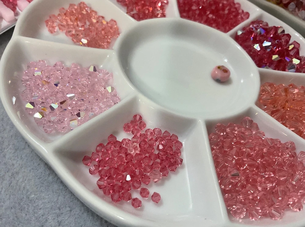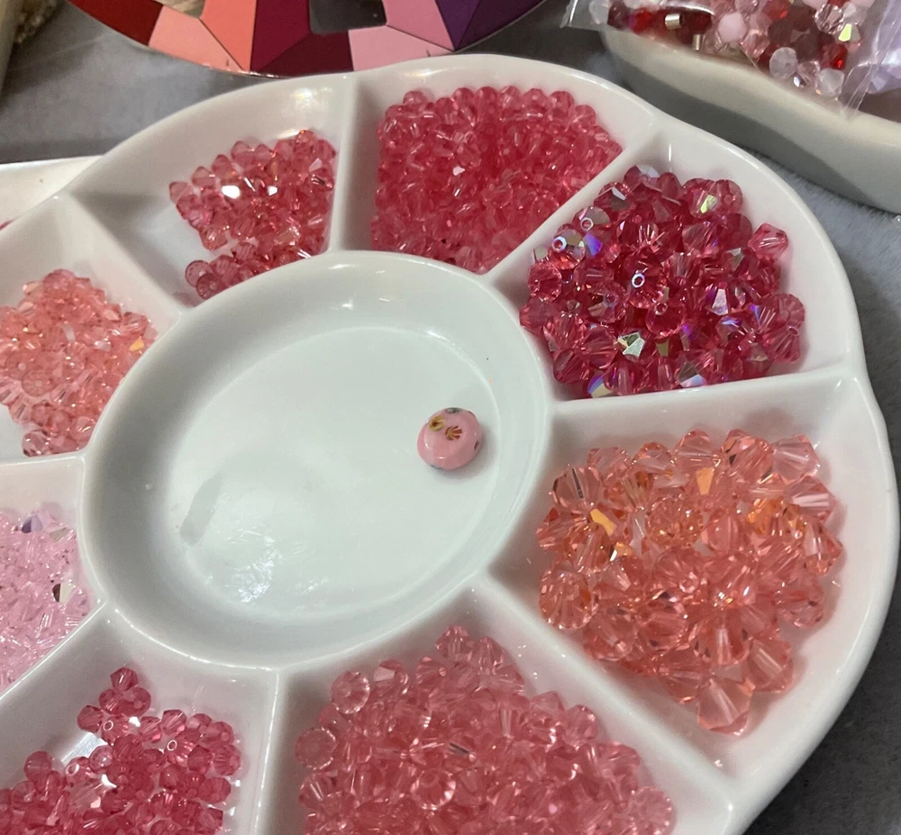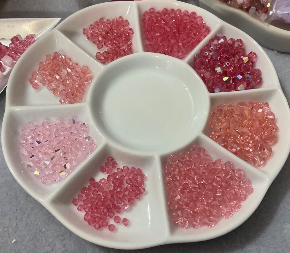 Vintage Swarovski Bead Lots inspire your unique creations to stand out while offering the air of exclusivity your Bead Art Jewelry Designs desire. Swarovski Crystal Bead LOT 5301 Bicones 5000 Faceted Round Light ROSE 3mm 5301 Transparent Rose, 4mm 5000Transparent Light Rose, 4mm 5301 Transparent Champagne Light Rose, 4mm 5301 Transparent AB Light Rose, 4mm 5301 Transparent Light Rose, 5mm 5301 Transparent AB Light Rose 6mm 5301 Transparent Light Rose Additionally, this bead lot comes in Various sizes of Flip-Top Tube bead storage containers. My Swarovski Crystal & Czech Glass Bead Lot Collections offer significant savings, featuring various beads and crystal sizes in one bead lot, with postage savings alone - as postage continues its meteoric rise - savings that you can put towards ordering the best in quality beads and beading supplies for your Bead Art Jewelry Designs. Bead Lot includes what's listed/pictured and Flip Top Tube packaging: 3mm 5301 Transparent Rose 4mm 5000 Transparent Light Rose 4mm 5301 Transparent Champagne Light Rose 4mm 5301 Transparent AB Light Rose 4mm 5301 Transparent Light Rose 5mm 5301 Transparent AB Light Rose 6mm 5301 Transparent Light Rose All of my Swarovski listings are Vintage or Circa (manufactured before or around) 1998 - 2003.. As most jewelry designers, bead artists, and crafters know, Swarovski no longer just sells to smaller, unauthorized, contract-bound resellers. With all that being said, and although there are others with limited offerings of Swarovski Crystal Beads, Bicones & Pendants, we all know that, unless an authorized reseller, what being offered is it. NOTE : Even authorized resellers will not have many of the colors, sizes, and finishes as the latest Swarovski Crystal Designs have changed considerably. There are some amazing Crystals bead manufactures which my wholesaler and certified Swarovski dealer highly recommend; these brands are more than comparable replacements for anything Swarovski.