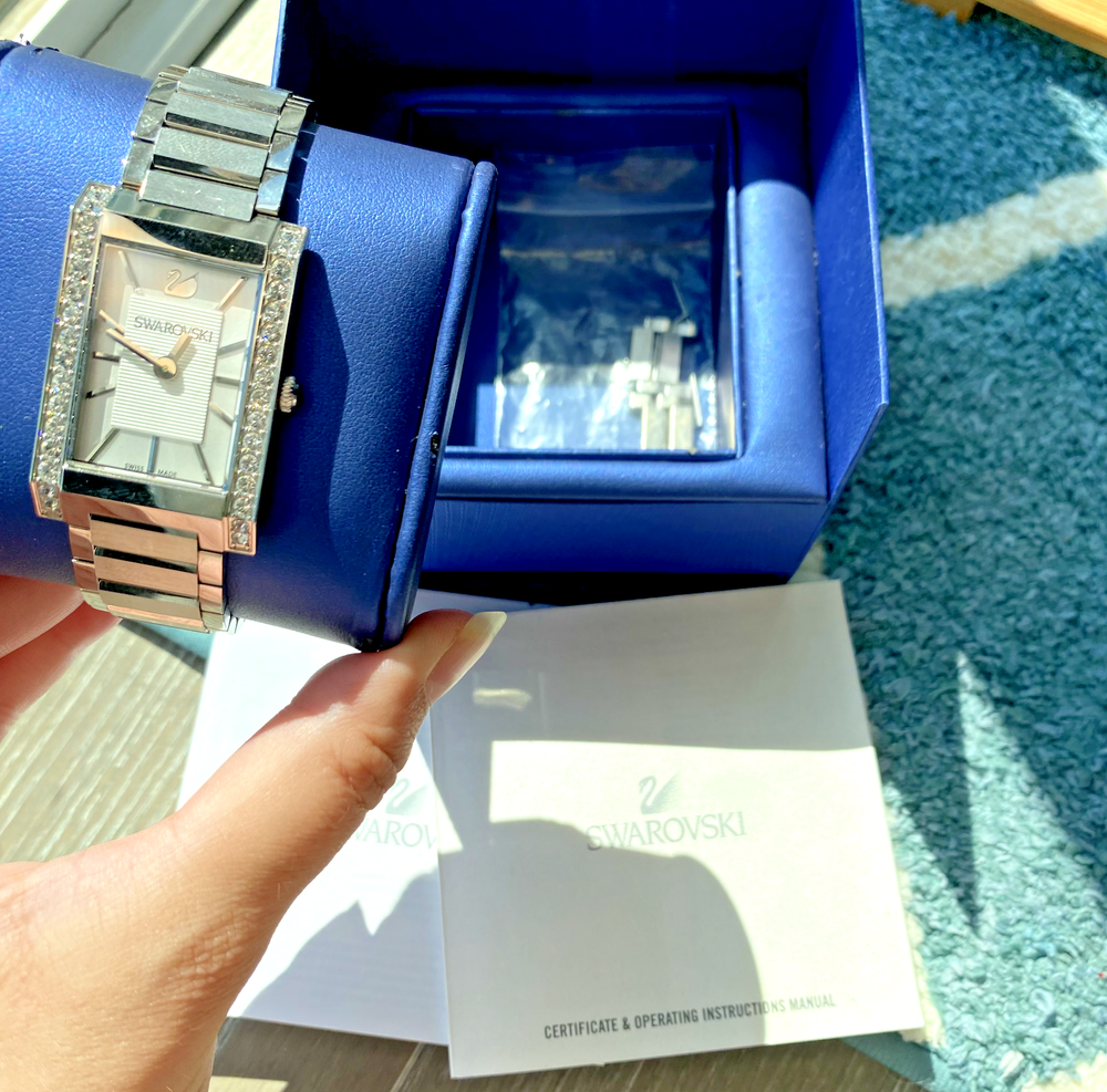 This stunning Swarovski watch is pure elegance! The crystal bezel sparkles beautifully, and the stainless steel band feels luxurious yet comfortable. The left-handed design adds a unique touch, while the Swiss craftsmanship ensures precision. Perfect for dressing up or everyday wear—it’s a timeless piece that elevates any outfit. Comes with everything you’d expect from a high-end brand. Absolutely love it!