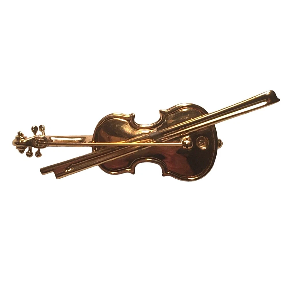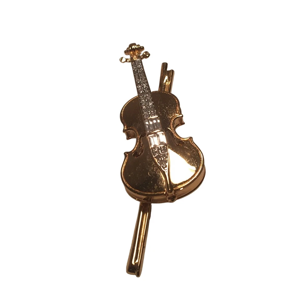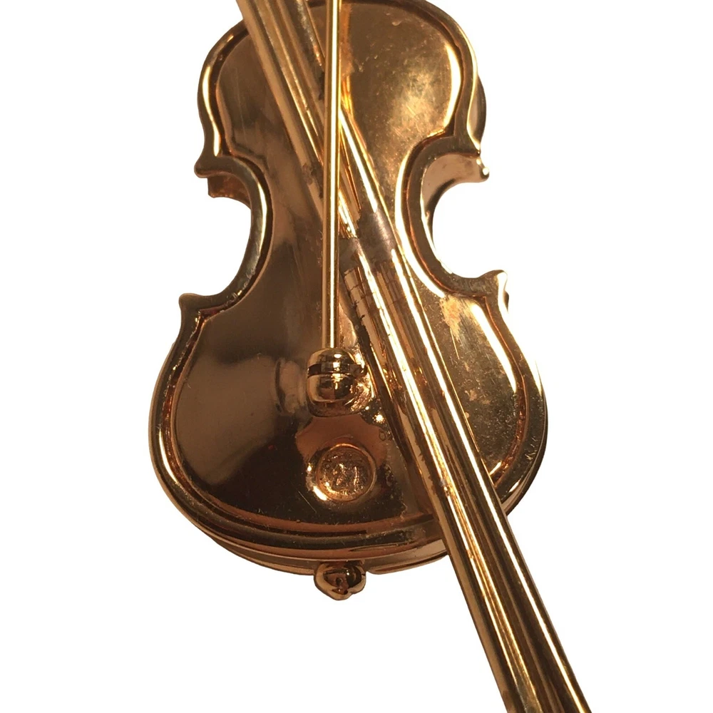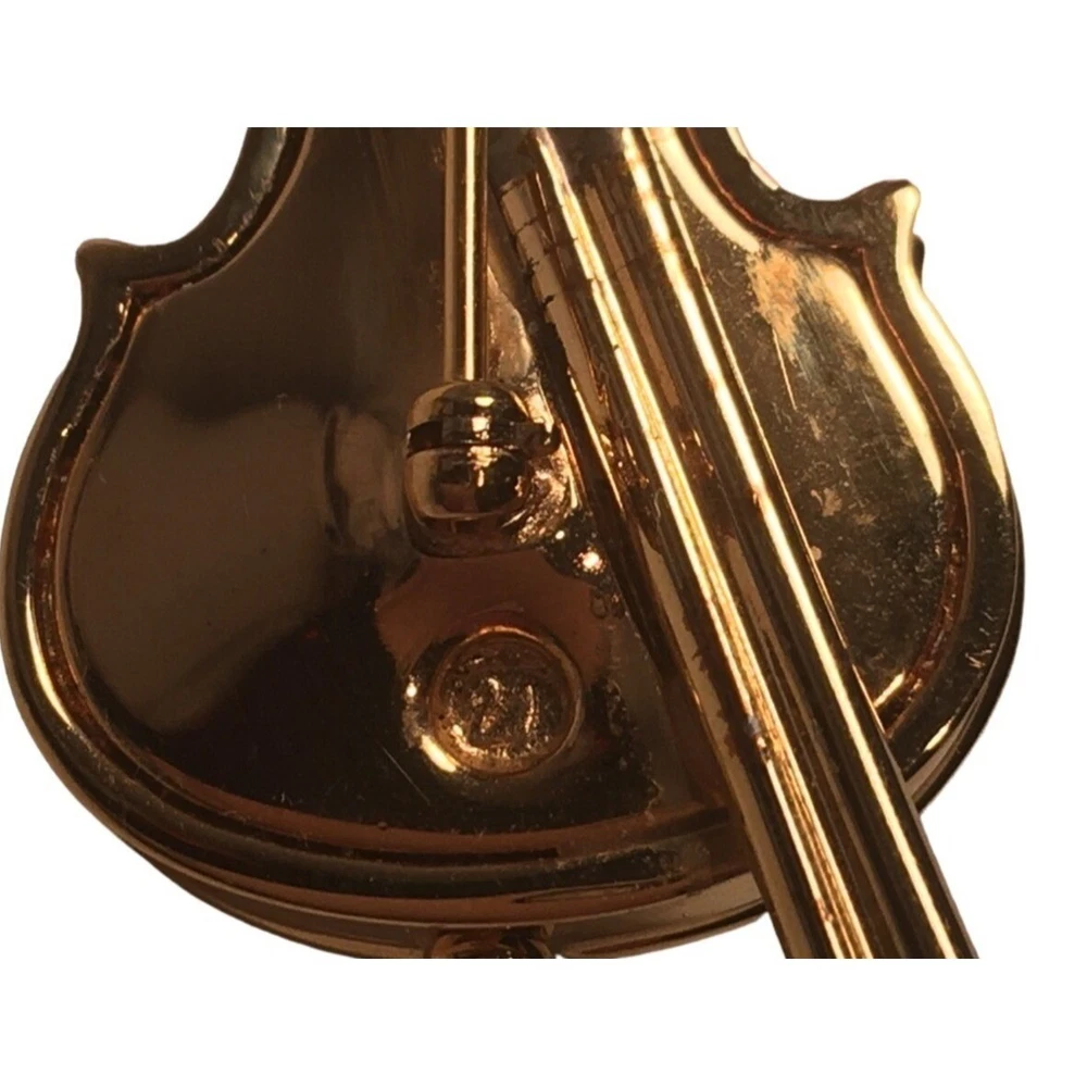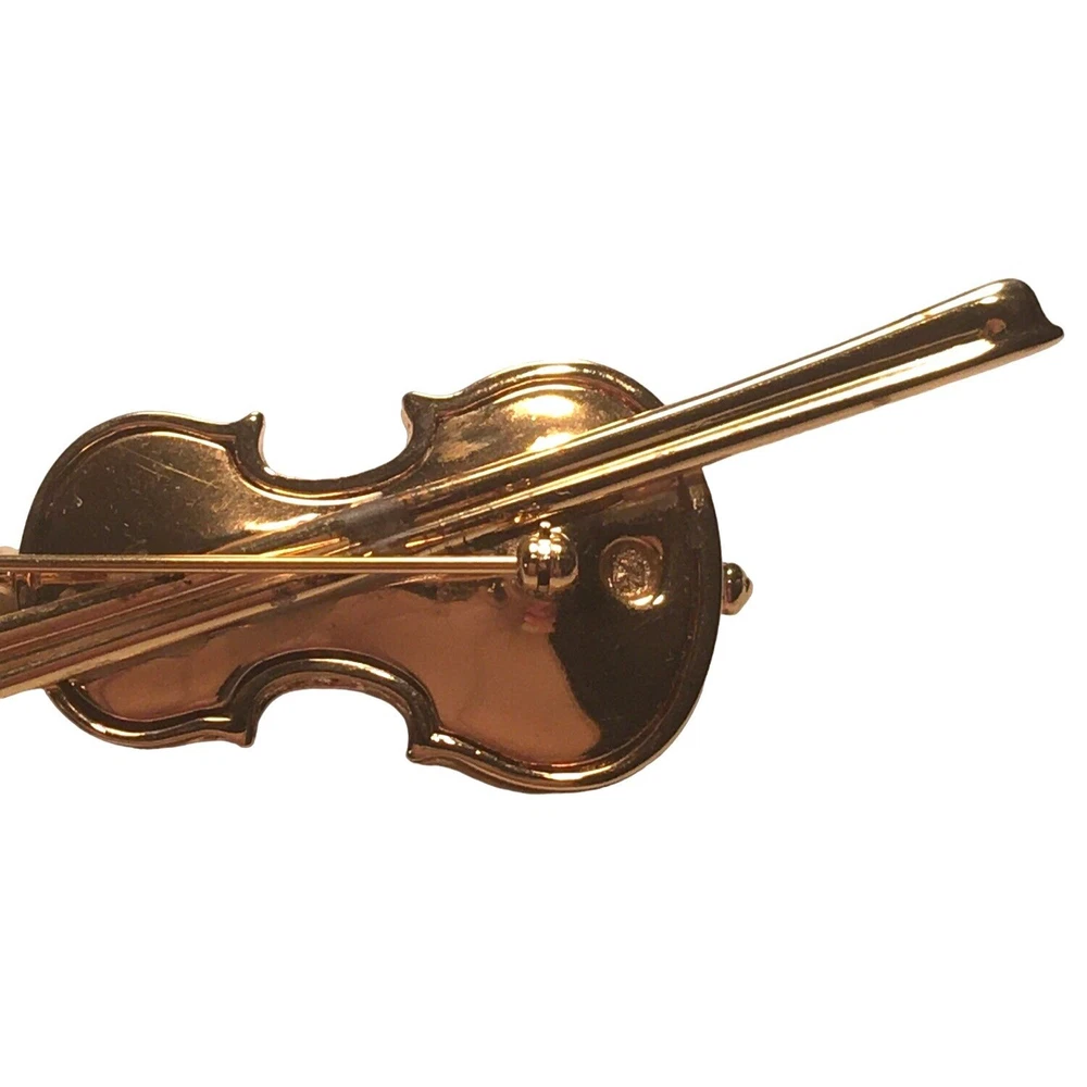 Swarovski Crystal Violin Brooch Pin Musical String Instrument Orchestra Gold Tone Signed Swan High Fashion Jewelry This beautifully made Swarovski brooch is gold plated with beautiful clear crystals accenting the fingerboard string area of the violin. The crystals are done in round and baguette stones for a nice design element. This is a gorgeous brooch and will be a wonderful addition to any collection; Swarovski, brooch, music, musical instruments. Clasp - Rolling and firm, Pin is straight Marking - Swan hallmark on the bottom Measurements Approximately: 3" W X 1" H Condition: Pre-Owned & Used Good condition, back side has some gold tone metal removed, looks like glue along back of violin where the bow is attached as if it may have been repaired. The bow is firmly attached. Some light scratching and color variations on surface. Please see all photos. Swarovski, Crystal, Violin, Brooch, Pin, Musical, String, Instrument, Orchestra, Gold, Tone, Signed, Swan, High Fashion Jewelry All jewelry purchases will include a beautiful gift box unless in its original box. All items will ship by ground advantage mail unless buyer selects priority mail at the time of purchasing. Items will be shipped out quickly. We strive hard to describe items as accurately as possible including listing condition issues and adding photos. If you feel the item is not as described please contact us and describe where you feel we missed the mark. Many of the items we sell are vintage so we ask you to keep that in mind as they are many years old. With age items may have normal wear and tear or have limited additional life span all items sold as is. Please take this fact into your purchasing decisions. We give much attention and care to packaging our items so there is no breakage or damage. If you are unsatisfied for any reason PLEASE reach out to us before leaving negative feedback so we can make you a happy customer. Return policy please contact us within 48 hours of receiving your item to inform us of any issues. Thank you for looking and shopping Treasures Found in Time we appreciate you.