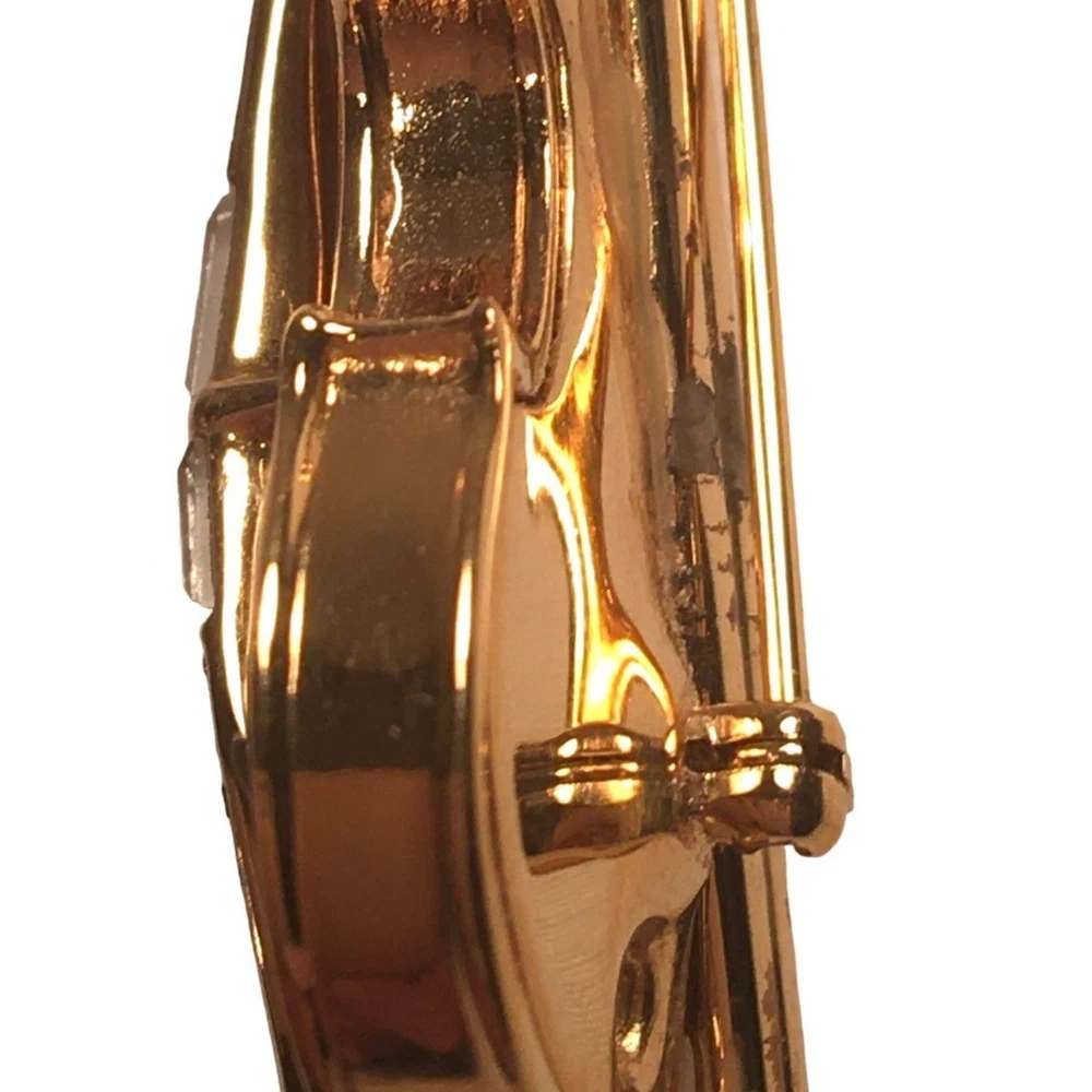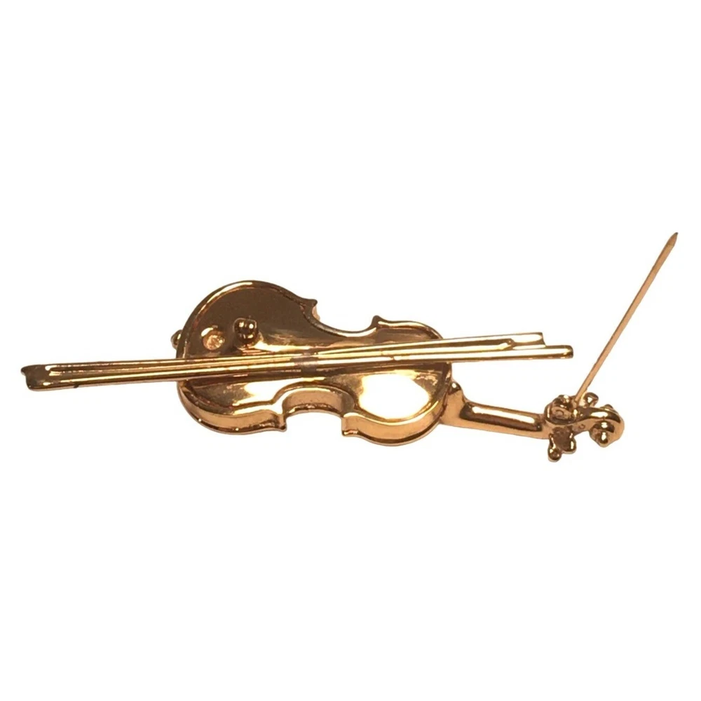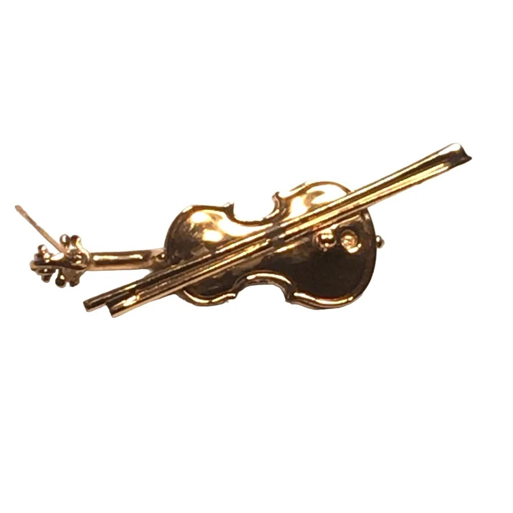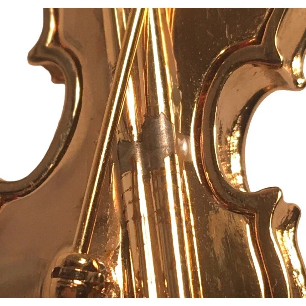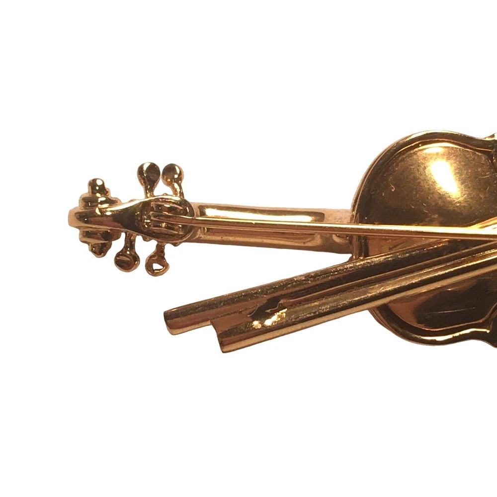 Swarovski Crystal Violin Brooch Pin Musical String Instrument Orchestra Gold Tone Signed Swan High Fashion Jewelry This beautifully made Swarovski brooch is gold plated with beautiful clear crystals accenting the fingerboard string area of the violin. The crystals are done in round and baguette stones for a nice design element. This is a gorgeous brooch and will be a wonderful addition to any collection; Swarovski, brooch, music, musical instruments. Clasp - Rolling and firm, Pin is straight Marking - Swan hallmark on the bottom Measurements Approximately: 3" W X 1" H Condition: Pre-Owned & Used Good condition, back side has some gold tone metal removed, looks like glue along back of violin where the bow is attached as if it may have been repaired. The bow is firmly attached. Some light scratching and color variations on surface. Please see all photos. Swarovski, Crystal, Violin, Brooch, Pin, Musical, String, Instrument, Orchestra, Gold, Tone, Signed, Swan, High Fashion Jewelry All jewelry purchases will include a beautiful gift box unless in its original box. All items will ship by ground advantage mail unless buyer selects priority mail at the time of purchasing. Items will be shipped out quickly. We strive hard to describe items as accurately as possible including listing condition issues and adding photos. If you feel the item is not as described please contact us and describe where you feel we missed the mark. Many of the items we sell are vintage so we ask you to keep that in mind as they are many years old. With age items may have normal wear and tear or have limited additional life span all items sold as is. Please take this fact into your purchasing decisions. We give much attention and care to packaging our items so there is no breakage or damage. If you are unsatisfied for any reason PLEASE reach out to us before leaving negative feedback so we can make you a happy customer. Return policy please contact us within 48 hours of receiving your item to inform us of any issues. Thank you for looking and shopping Treasures Found in Time we appreciate you.