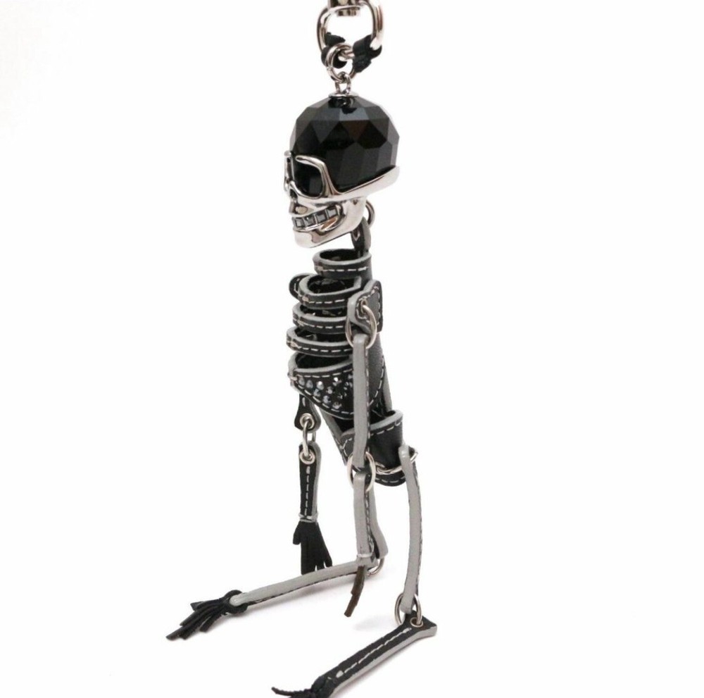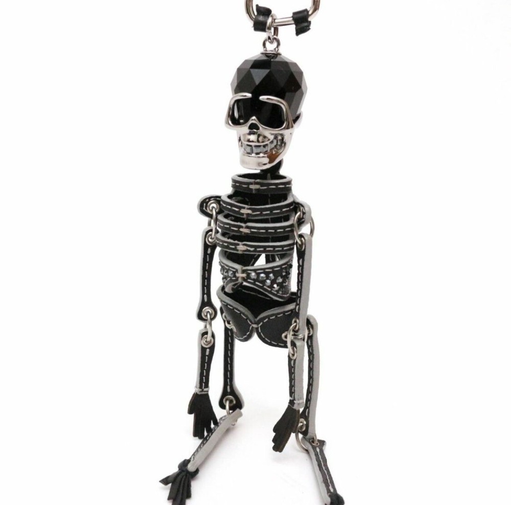 Large prominent crystal studded black leather skeleton with crystal ball skull and crystal grillz style teeth. Preowned item has never been used and is in mint condition. Includes box and proof of purchase (written in Japanese) Overall length: 18cm Economy shipping: Shipped by registered airmail with tracking. Delivered by postal service.