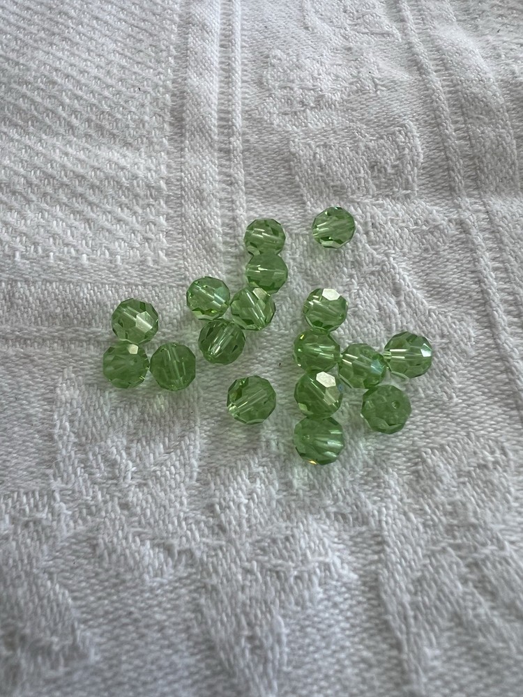 Vintage Swarovski faceted crystals. Peridot color, size 6 mm, made in Austria , new from old stock. 144 pieces, one Gross . Shipped loose in poly bag. $30