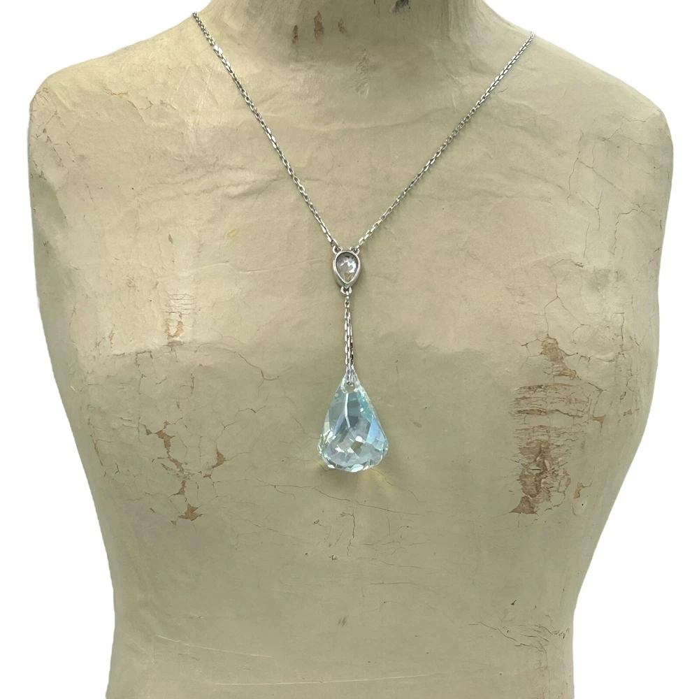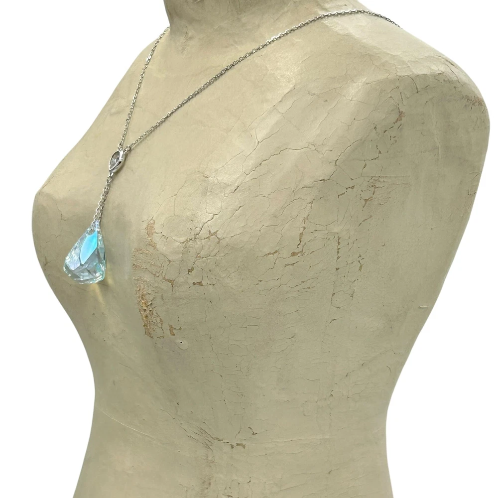 Swarovski Lunar Light Azore Moonlight Crystal Pendant Necklace Iridescent A truly beautiful crystal pendant necklace that shimmers in the light. Chain is rhodium plated and has lobster clasp that is in good working condition. Item shows no damage. Expect age appropriate pre-used wear but nothing that takes away from its charm. Please see all images for further details. Be sure to see all our other items for possible bundle and shopping deals! Will pack with extra care and attention that vintage items require. Quick shipping guaranteed. Returns accepted at buyer’s expense. Display boxes and props not included unless otherwise noted. Own this beautiful necklace! We are a reputable seller! Check out our reviews to see what customers say about our products and service. You won’t regret trusting Fairfield for your online purchase.