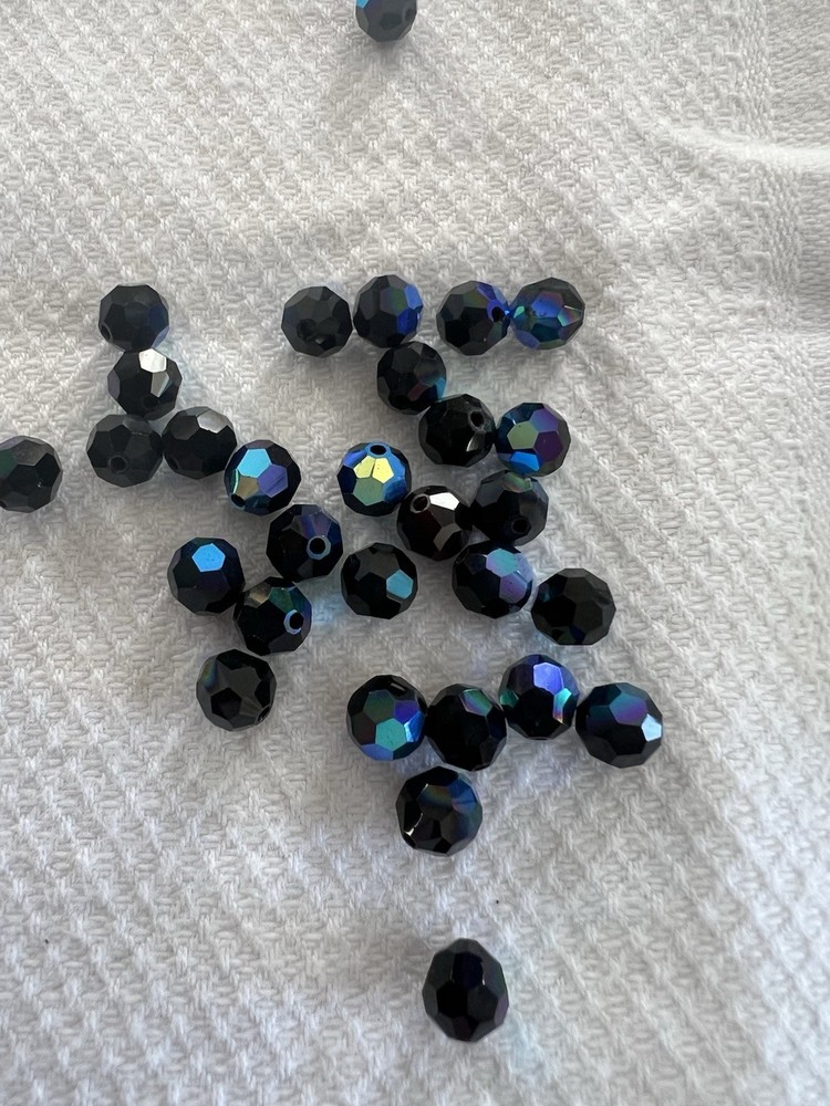 Swarovski Crystal faceted round beads. Jet with Aurora borealis coating . 6mm size. New Article 5000. 1 gross - 144 pcs. Shipped loose in poly bag.