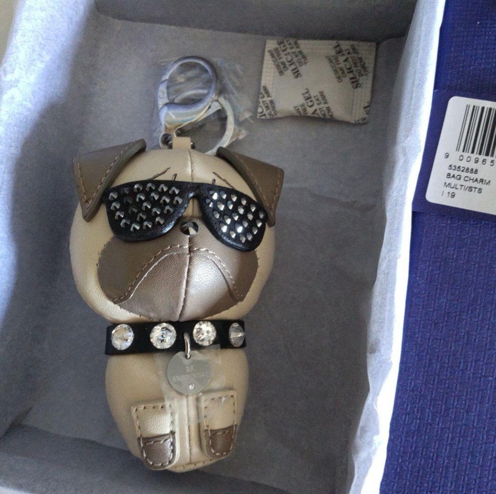 Get your hands on this super cool puggy with his very own gem encrusted sunglasses and blinged out collar. Swarovski official item includes box and tags. Made of 100% cow leather. Size: 10.5 cm x 8 cm Economy Shipping: Shipped by registered airmail with tracking. Delivered by postal service.