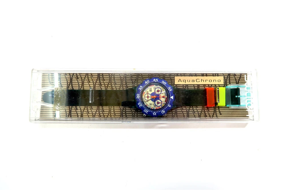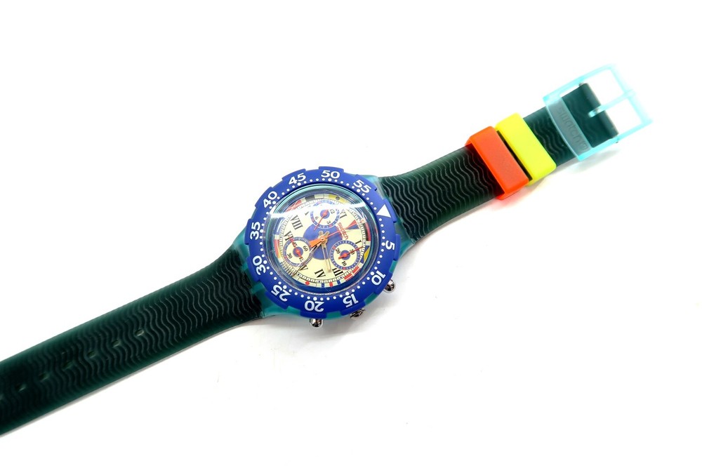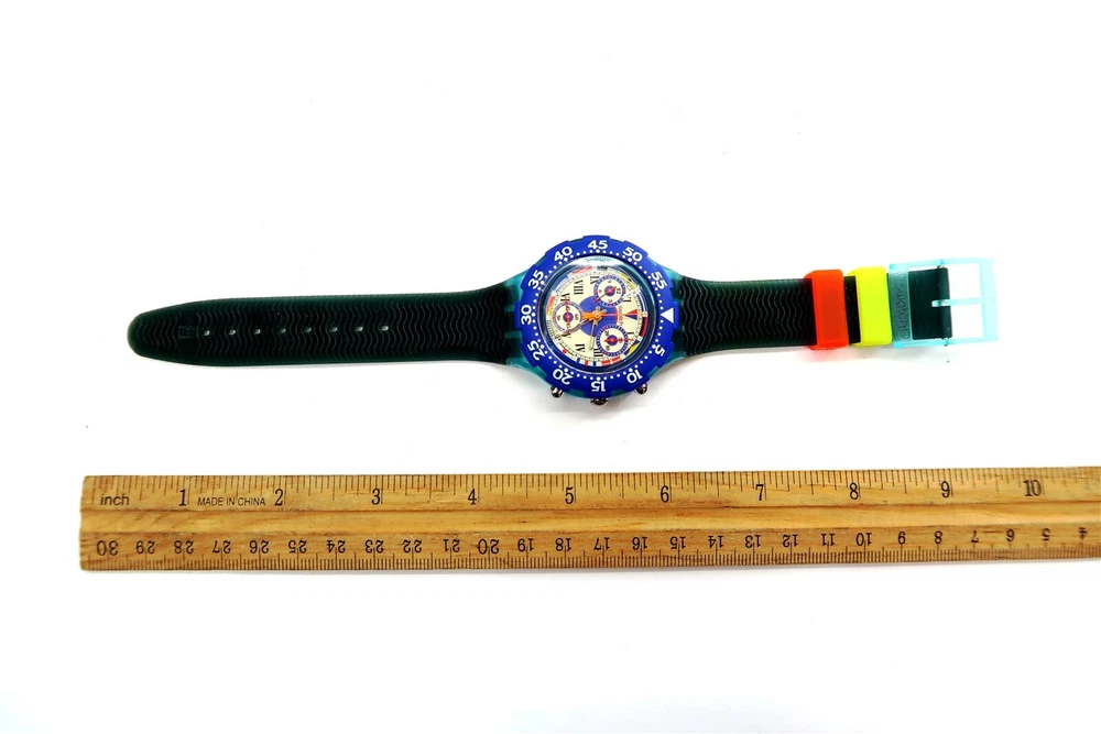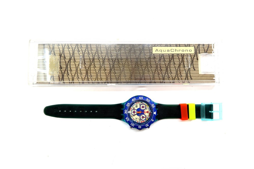 NEW Swatch AcuaChrono Watch BIG BLUE SBN101 w/ Case & Papers 1995 NOS Gents This eBay listing is for a New Old Stock classic SWATCH WATCH that comes as you see pictured in the listing and noted above. This watch is brand new and never used before and comes with the original case and paperwork. If you collect classic Swatch Watches, then please check out my other listings in my ebay store for many more great Swatches!! I just picked up close to 800 NOS Swatches from a local auction where I'm told the consignor had one of the largest Swatch watch collection in the United States. This was their 3rd and final auction of Swatches. In total, I purchased close to 1500+ Swatches!! Many of the watches are Special Editions, Limited Editions, Boxed Sets, Scarce and rare models plus other vintage Swatches as well. I will remove all of the old Swatch batteries and will replaced them with brand new batteries to verify that they are all are all in good working condition unless noted below. Please note that vintage and retro Swatches are on the smaller size compared to modern style watches. Most standard Gents (mens) watches have a 33mm-34mm case. I will try to include a picture with each new listing showing the watch next to a standard ruler so that you can see the true size of this collectible Swatch watch. Swatch name : BIG BLUE Model : SBN101 New Battery : Yes (due to age, the original battery was removed with a new battery installed) Features/Notes : Works Great! Circa 1994. Seller Location Reference - Box 64 BID IN CONFIDENCE – CHECK MY FEEDBACK! My goal is your satisfaction. I leave positive feedback right after the payment is received for all orders!! If you plan to leave anything less than positive feedback and 5 stars - please let me know so that I can work out any problems that you may have. I aim to please!! SHIPPING & HANDLING FOR US BIDDERS We ship ASAP upon payment as noted above within 1 business day 99% of the time!! We normally pack up your new treasures 2 - 3 times a day and ship using USPS and Fedex Ground so that you get your items in a timely fashion. As always - there is no charge for local pickup on any of my items!! SHIPPING AND HANDLING FOR INTERNATIONAL BIDDERS Import duties, taxes and charges are not included in the item price or shipping charges. These charges are the buyer’s responsibility. Please check with your country’s customs office to determine what these additional costs will be prior to bidding/buying.” THANK YOU AND HAVE A WONDERFUL DAY!! Powered by SixBit's eCommerce Solution