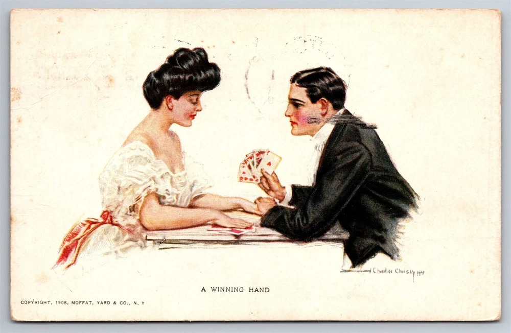 Sweathearts Playing Cards Moffat Yard & Co 1908 Artist Signed Postcard Y14 Thank you for visiting! This is a standard size postcard, 3.5" X 5.5". In stock, usually ships within 24 hours of your purchase. Please ask questions if you are unsure about anything. Our goal is for your complete satisfaction with the postcard and your experience. Check all my other listings in my store. RETIREDWITHBOOKS Powered by SixBit's eCommerce Solution