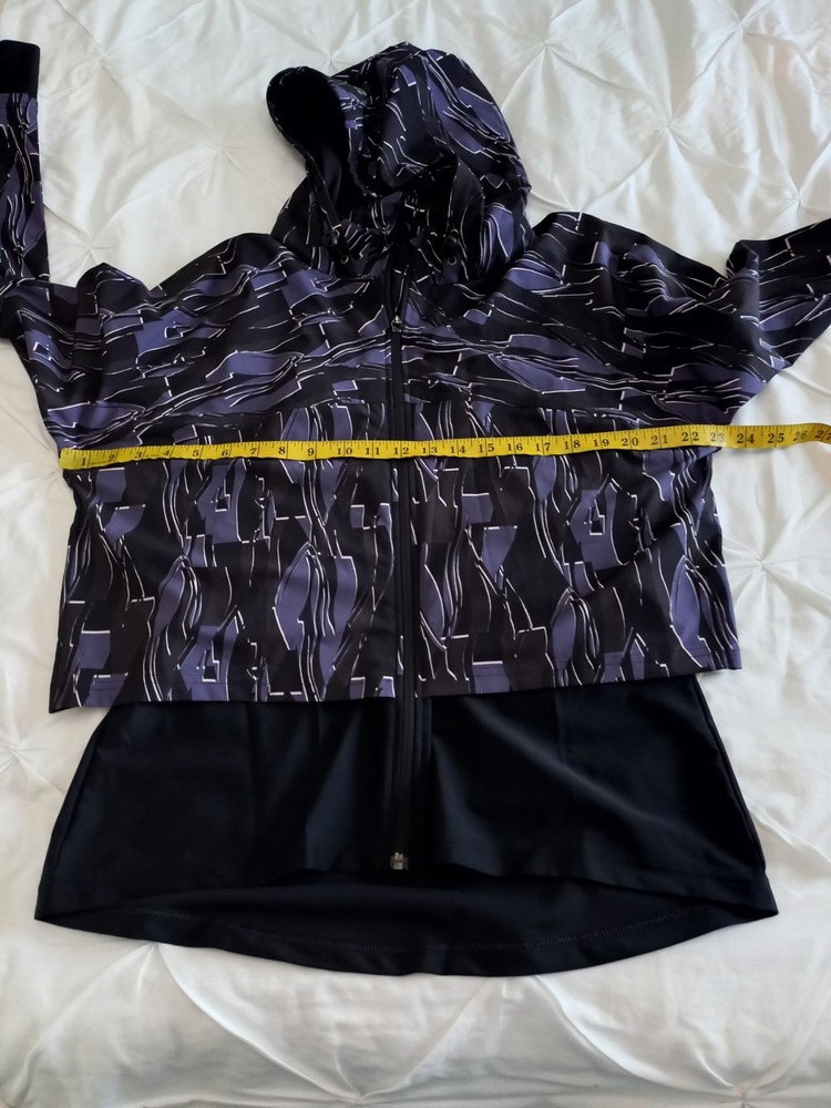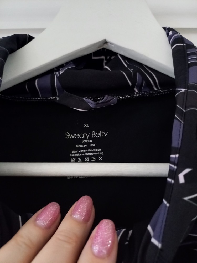 This Sweaty Betty Black Purple Zip Hoodie Jacket in size XL fits a UK size 16. Made from stretchy material, it is perfect for activewear and can be machine washed for easy care. With long sleeves and a zip closure, it is ideal for the spring season. The jacket features the signature Sweaty Betty brand and comes in a stylish track jacket design. Perfect for women looking for a comfortable and fashionable outerwear option. Excellent condition Hood can be packed in or let out box12blue