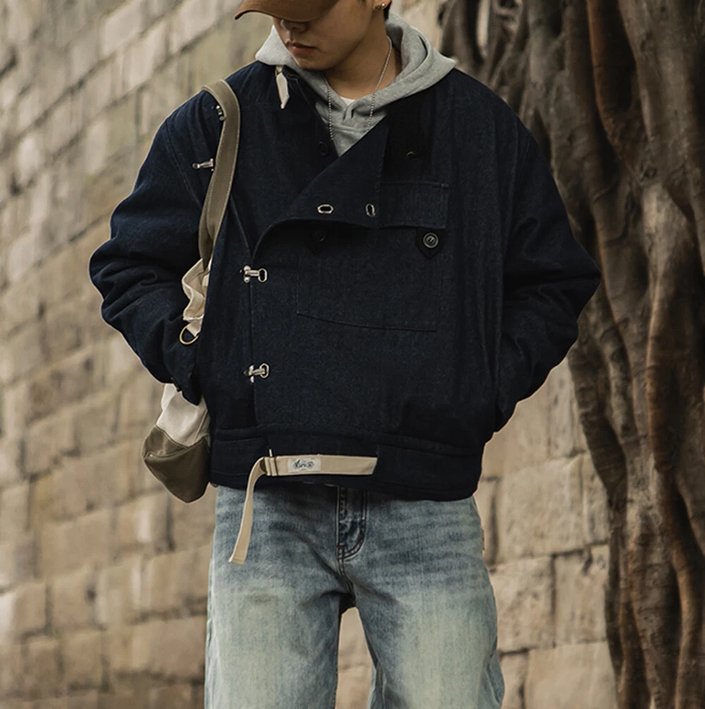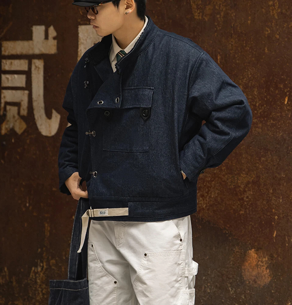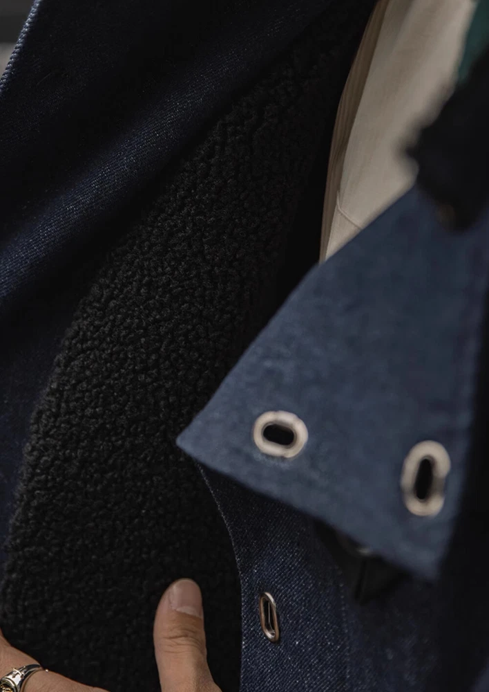 Swedish Motorcycle Jacket Men's Winter Warm Coat Denim Jacket Retro Casual Coat