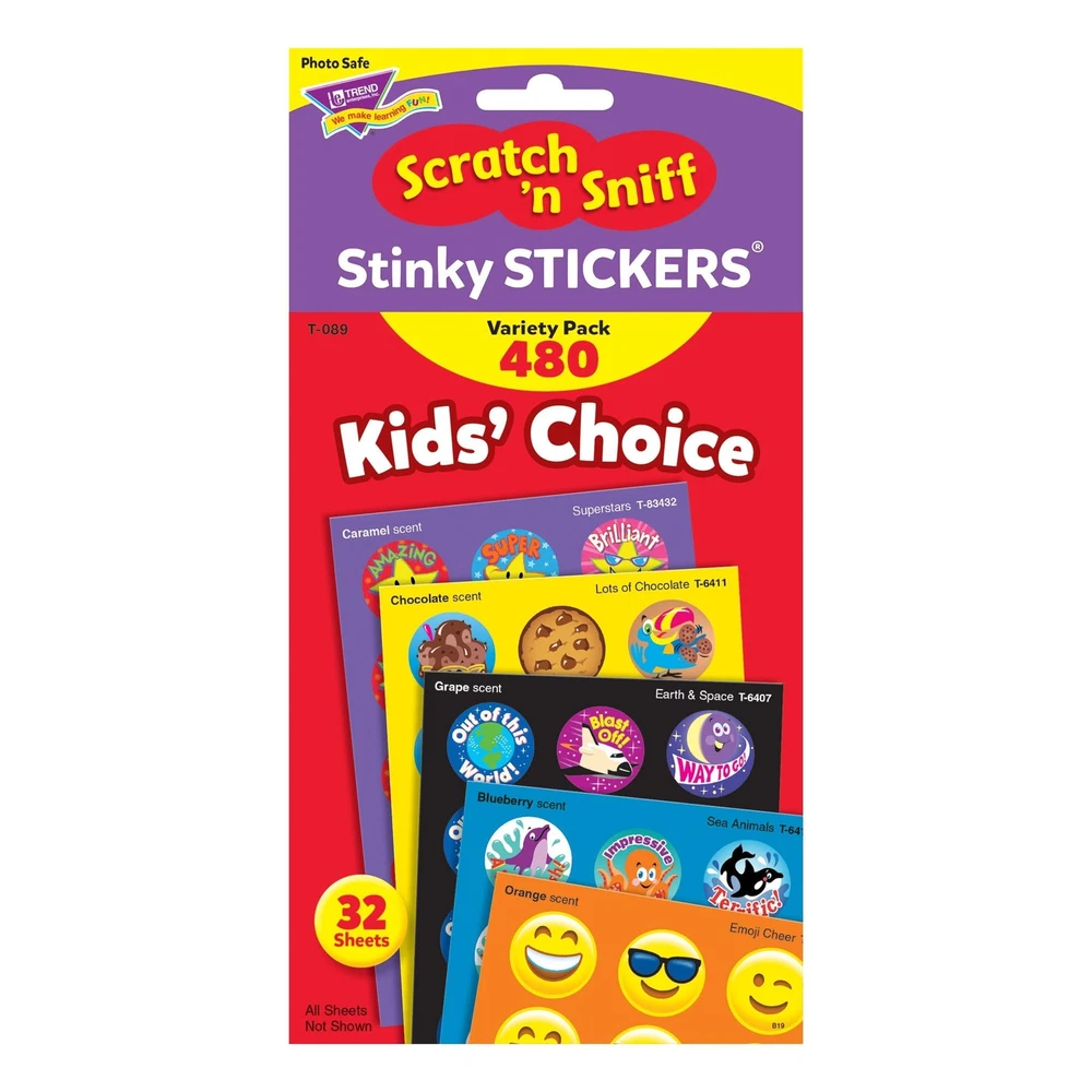Designs include Picnic, Crayons, Bubbles, Sea Animals, Peppermints, Farm, School Time, Sun & Fun, Sports, Excellence Expressions, Sweet Treats, Flowers, and Big Birthday. 94 designs, 480 stickers. CELEBRATE AND MOTIVATE - Stinky Stickers have been a favorite reward for 40 years! Fun to collect, trade, and celebrate accomplishments and special occasions. Scratch and sniff again and again - the fun artwork and vivid scent brings joy for children and grownups alike. PARTY FAVORS AND CREATIVE CRAFTS - Add stickers to invitation envelopes; snip sheets apart to hand out for Halloween, in treat bags and hostess gifts. Makes a big impact in bullet journals! Work into art projects, birthday crowns, and gift wrapping for extra-sensory appeal! GREAT VALUE - 94 different designs across 30 sheets; 483 stickers in total. 12 scents included. Most stickers measure 7/8" to 1" diameter. Sheets are 4-1/8" x 5-7/8". WHAT A SELECTION! - Designs include Picnic, Crayons, Bubbles, Sea Animals, Peppermints, Farm, School Time, Sun & Fun, Sports, Excellence Expressions, Sweet Treats, Flowers, and Big Birthday. QUALITY AND SAFETY - TREND's stickers exceed all children's product safety standards and are tested routinely. They are nontoxic and are not manufactured with nut oils. Acid-free to be usable with photos and scrapbooks. Designed and manufactured in the USA. Intended for ages 3 and up.