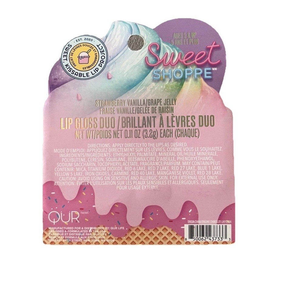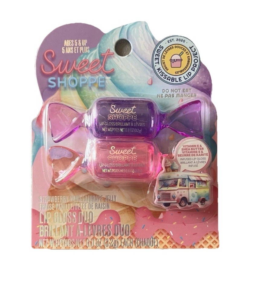 TWO Sweet Shoppe “Strawberry Vanilla & Grape Jelly” Flavored Lip Gloss Duo, New. **Ships Same/Next Day**