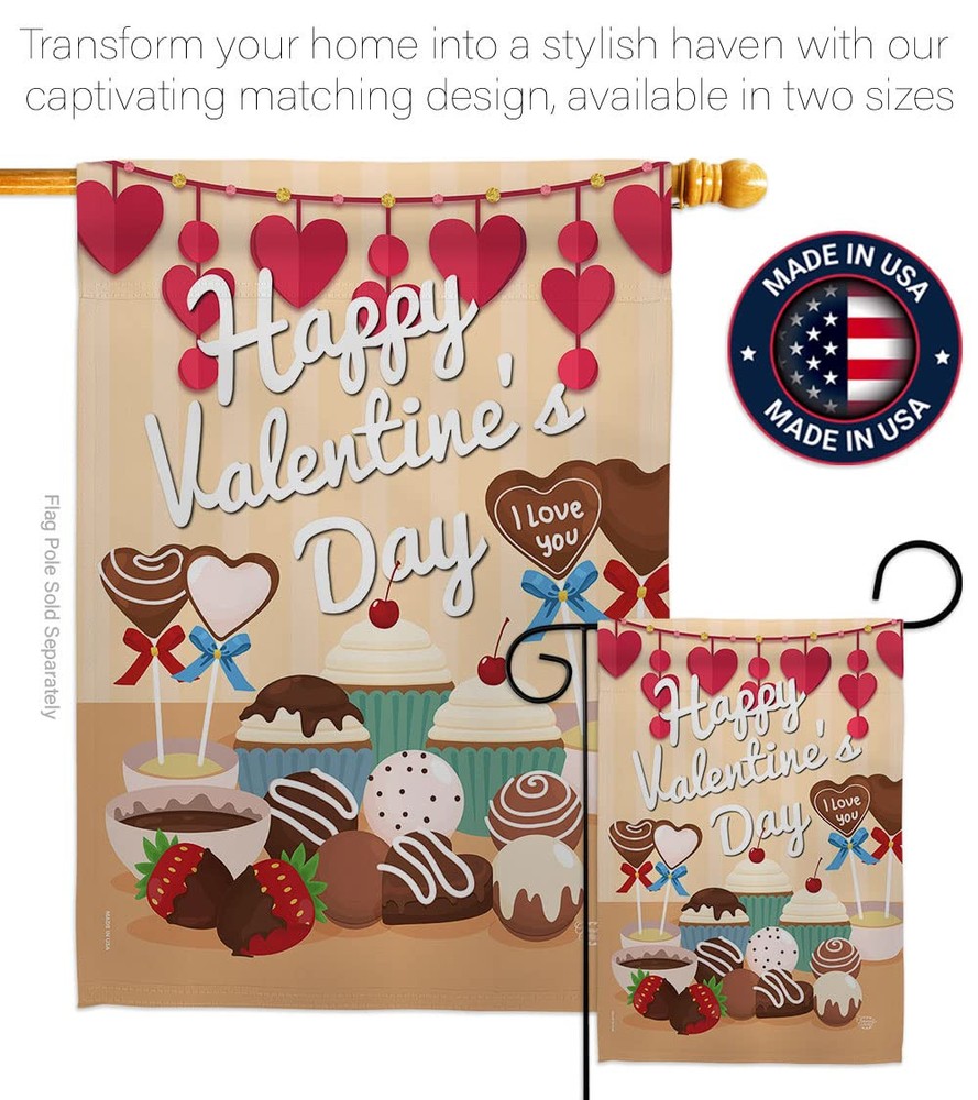 Valentines Beautiful Matching Large House Mini Garden Flags Set have variety of Flags Set for all occasions. Uniquely design for hanging indoor or outdoor use. We are committed to offering you exceptional values. Our customers enjoy displaying our Flags Set for longer periods. Specification: Theme: Valentines Size: House 28" X 40" Size: Garden 13" X 18.5" Print: Double-Sided Readable: Readable Both Sides Material: Weather Resistant 3 Layers Blockout Stitching: Double Stitched Display: Vertical Hang Type: Sleeve Artist: © Molly Will Special Features: Origin: Made In USA 92053 Package Include: 1 pc x Large House 28" X 40" 1 pc x Mini Garden 13" X 18.5" For more than a decade, we’ve been dedicated to manufacturing flags with no comparison in quality and beautiful designs. Our flags are made with our Pro Guard material that is soft to the touch and designs can be read correctly on the flag. A feature that our customers will love. We are committed to using eco-friendly inks that won’t leave a foot print in our environment. MPN: OC-VA-S-192053-IP-BO-D-US17-OC 92053 92053