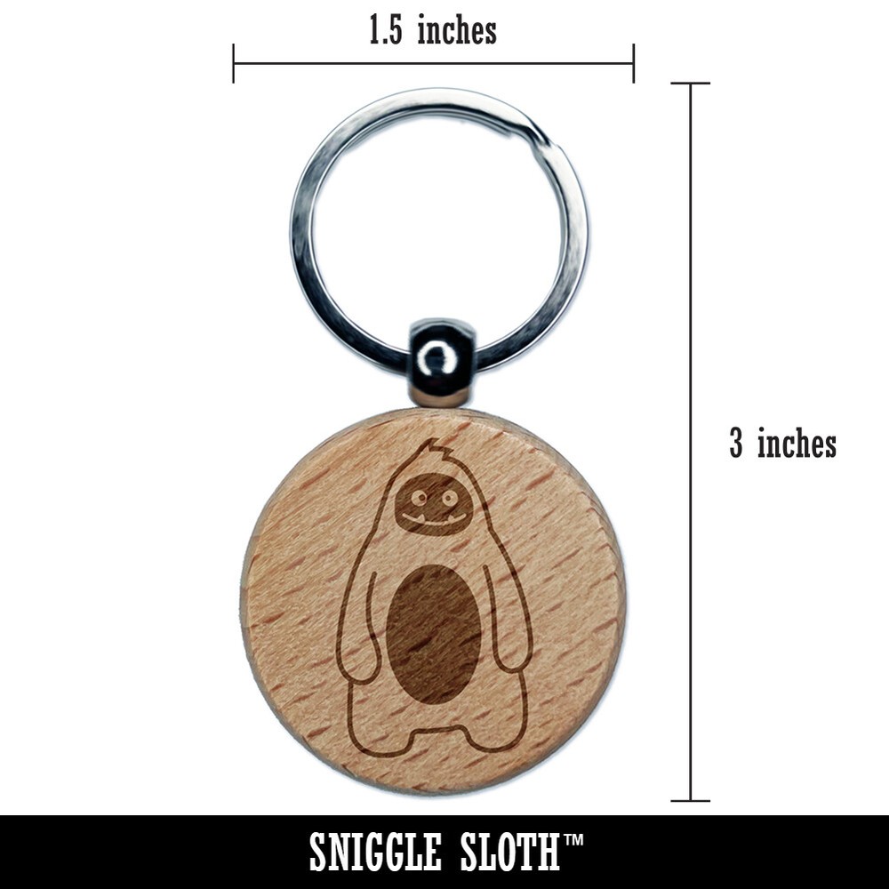Sweet Yeti Snowman Engraved Wooden Round Keychain Charm