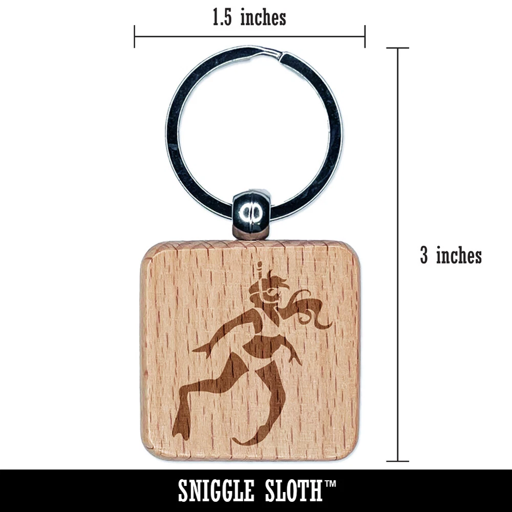 Swimmer Diver Snorkeling Woman Swimsuit Engraved Wood Square Keychain Tag Charm